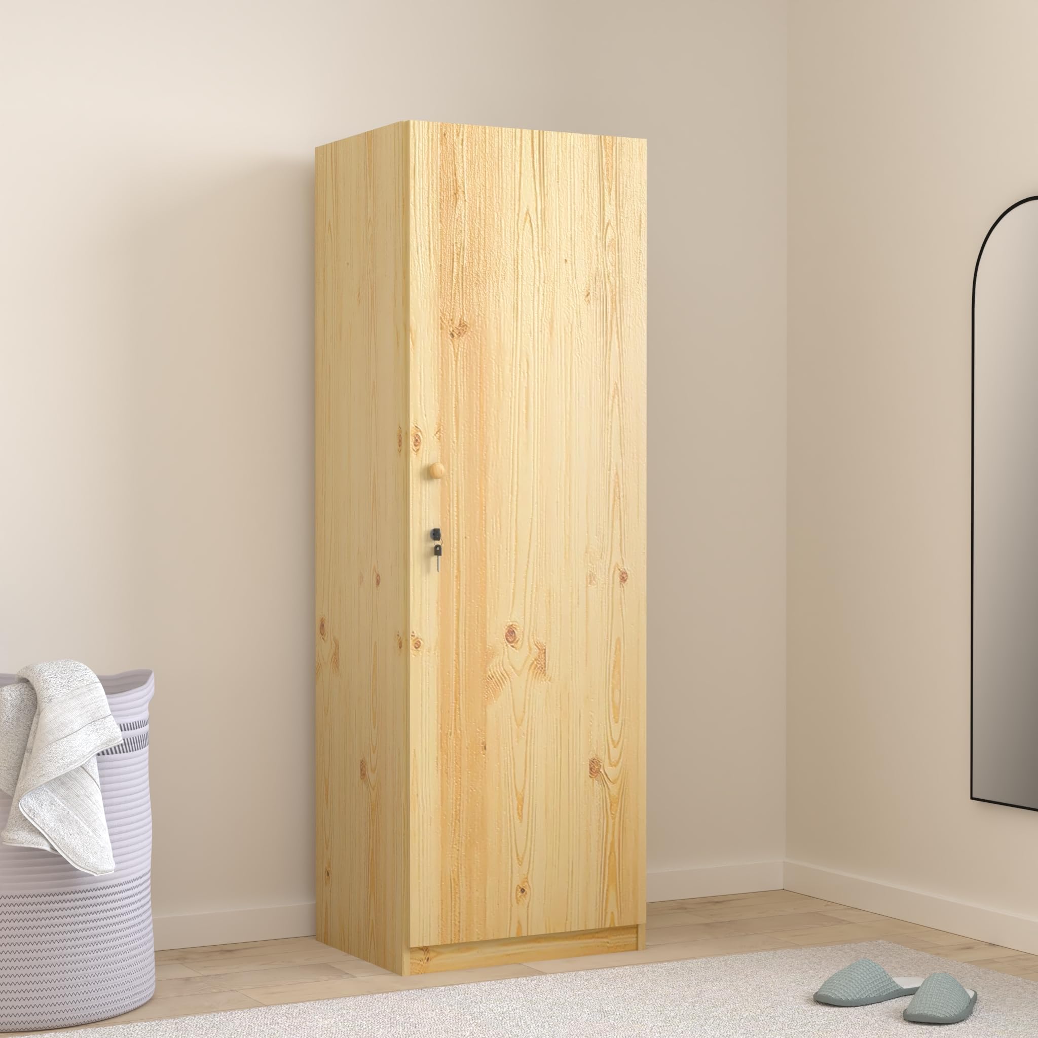 Kiefer Massivholz Schrank 180x60x50cm - 7 Fächer Mit Kleiderstange