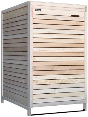 Schluss mit dem unschönen Anblick der Mülltonnen! Diese praktische Mülltonnenbox Roma aus naturbelassenem Kieferholz versteckt bis zu 4 Mülltonnen (120-240L) dekorativ in deinem Vorgarten. Mit den Maßen 114x133x78cm bietet sie reichlich Platz und die vormontierte Lieferung erleichtert den Aufbau. Besonderheiten: magnetischer Türverschluss, Kette am Deckel für einfaches Öffnen und stabile Metallbeschläge. Das Holz ist naturbelassen und kann nach deinen Wünschen gestrichen werden. Perfekt um deine Mülltonnen vor Witterung zu schützen und gleichzeitig deine Grundstücksoptik zu verbessern. Ein echter Hingucker der Ordnung schafft!
