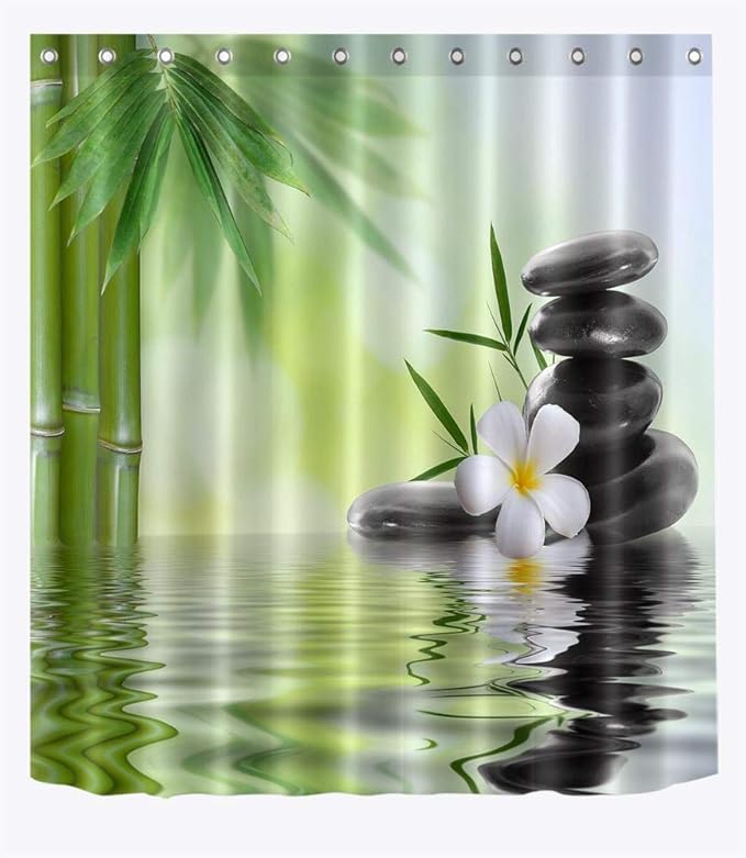 Duschvorhang 120x180cm Mit Kieselstein & Bambus Design - Wasserdicht & Antischimmel