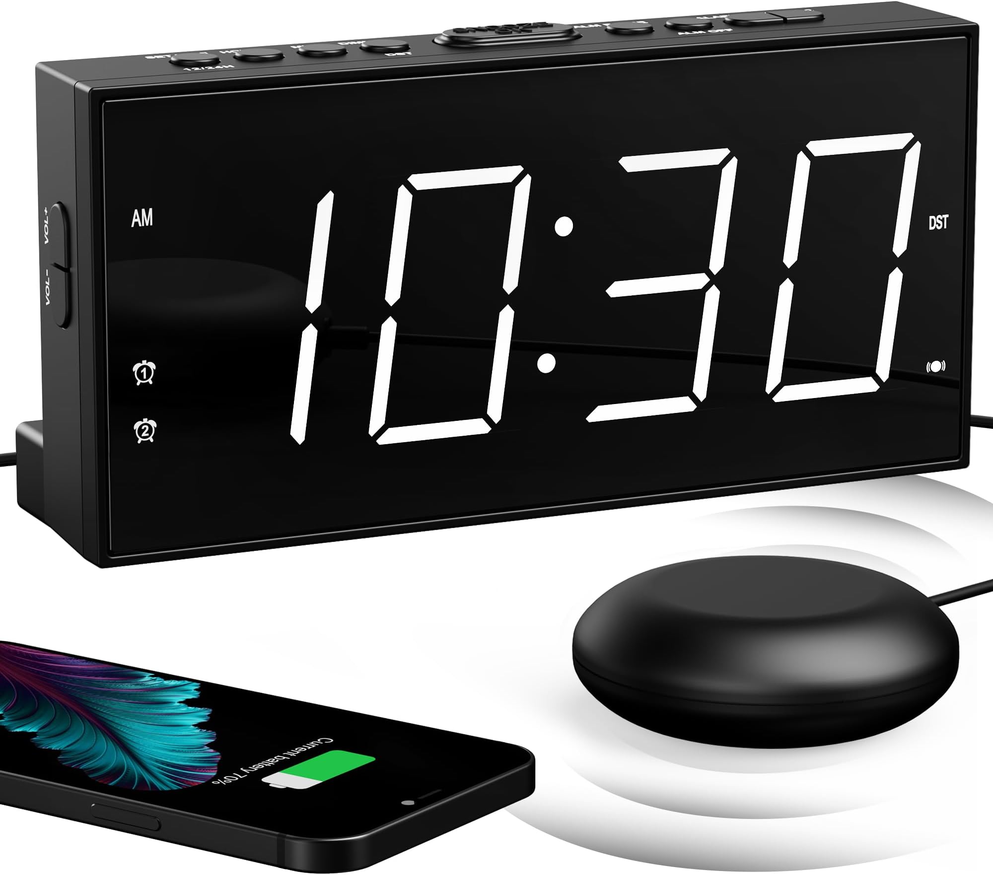 Kikumi Extra Lauter Wecker Mit Rädern - Vibrations Wecker Für Schwere Schläfer