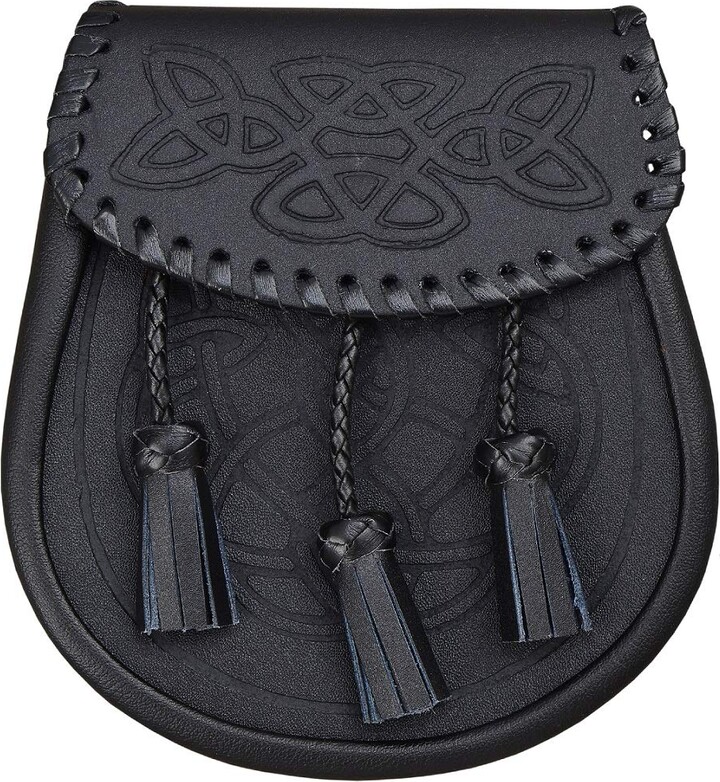 Schwarzer Leder Kilt Sporran - Schottische Felltasche Mit Quasten