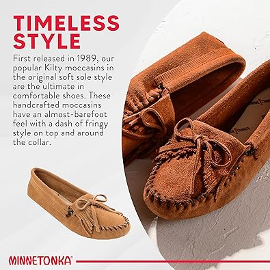 Minnetonka Kilty Moc Damen Mokassin - Bequeme Wildleder Schuhe Mit Fransen