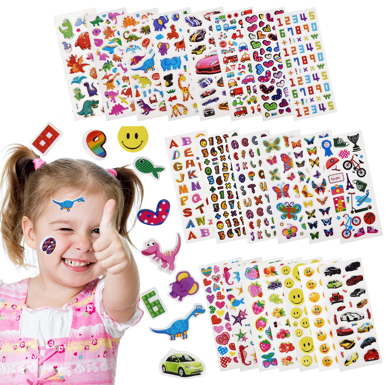 Meafeng 3D Schüttelsticker Für Kinder - 12 Glitzer Sticker Set Mit Motiven