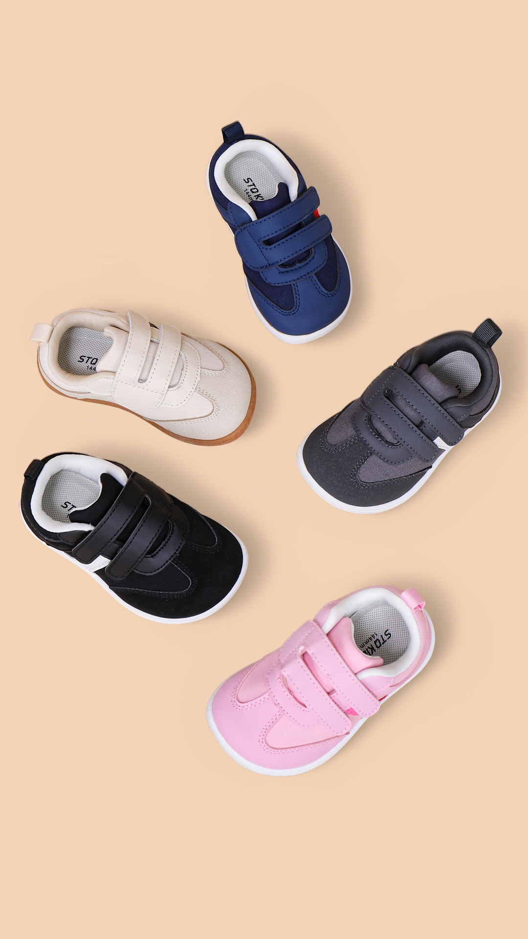 Diese STQ KIDS Barfußschuhe sind einfach perfekt für kleine Kinderfüße! Mit Zero-Drop-Sohle - das bedeutet, die Ferse ist nicht erhöht, genau wie barfuß laufen. Super für die natürliche Entwicklung der Füßchen! Extra breiter Zehenraum - da können sich die Zehen frei bewegen und spreizen, wichtig für gesundes Wachstum. Die rutschfeste TPR-Sohle gibt sicheren Halt bei den ersten Schritten - egal ob drinnen oder draußen. Mit praktischem Klettverschluss - einfach an- und auszuziehen, auch für die Kleinen selbst. Aus atmungsaktivem Material - die Füßchen schwitzen nicht so schnell. Weiches Innenfutter - kratzt nicht und ist super bequem. Das sportliche Design in Synthetikleder sieht cool aus und ist robust für den Spielplatz. Die profilierte Gummisohle gibt guten Grip auf verschiedenen Untergründen. Perfekt für Kita, Spielplatz oder Familienausflüge. Stärkt die Fußmuskulatur und beugt Fehlstellungen vor. Einfach die ideale Wahl für Eltern, die Wert auf gesunde Fußentwicklung legen! In verschiedenen Farben erhältlich - da findet jedes Kind seinen Lieblingsschuh!