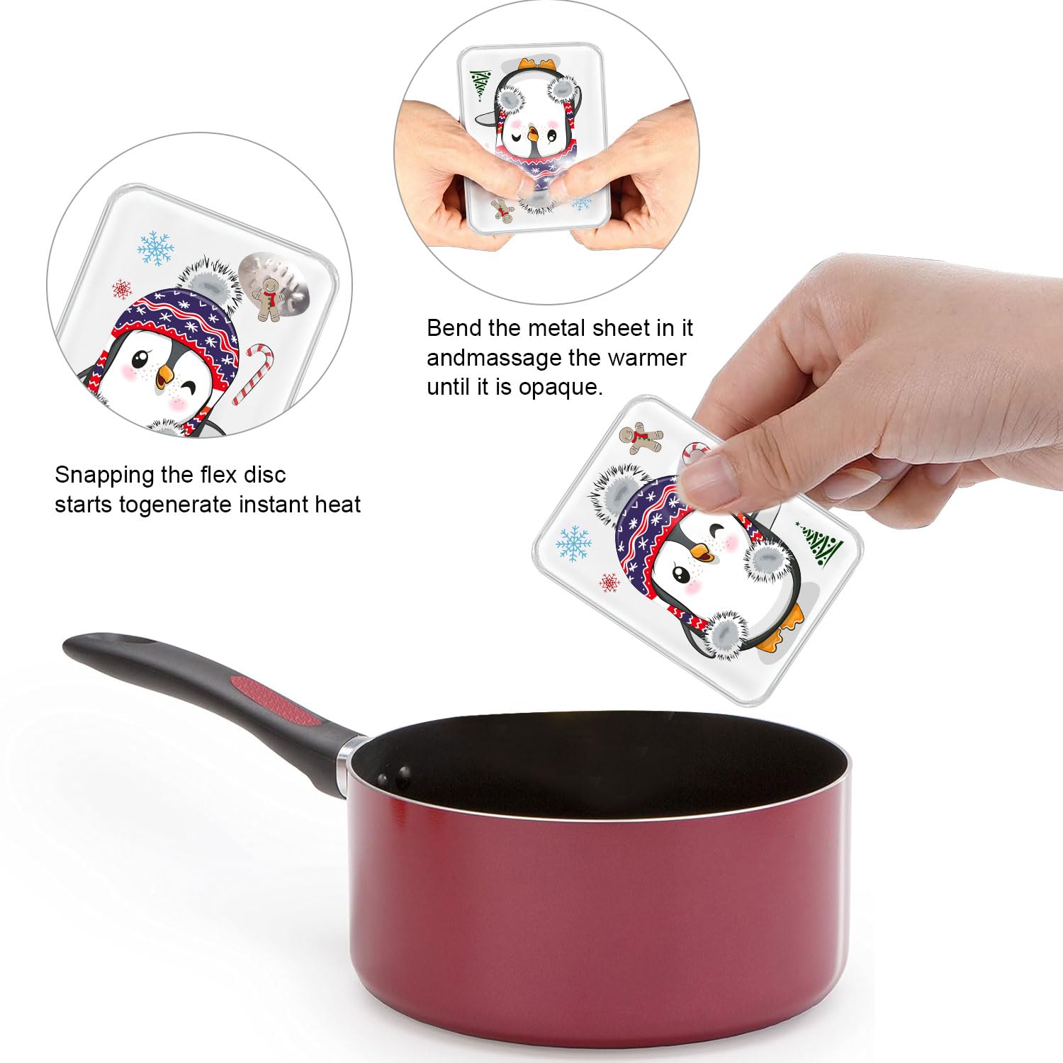 Einfach das Metallplättchen knicken und schon wird's kuschelig warm! Diese praktischen Taschenwärmer heizen sich innerhalb von Sekunden auf ca. 55°C auf und halten etwa eine Stunde lang. Das Beste: Sie sind komplett wiederverwendbar! Einfach abgekühlte Wärmer für ein paar Minuten in kochendes Wasser legen, abkühlen lassen und schon kannst du sie wieder verwenden. Perfekt für kalte Hände beim Winterspaziergang, Skiurlaub oder Camping. Super sicher und ungiftig - bestehen nur aus Natriumacetat und Wasser. Die weiche Hülle ohne scharfe Kanten liegt angenehm in der Hand. Sieht dazu noch stylisch aus und passt zu jedem Outfit! Ein tolles Geschenk für Freunde und Familie, das wirklich jeder gebrauchen kann.