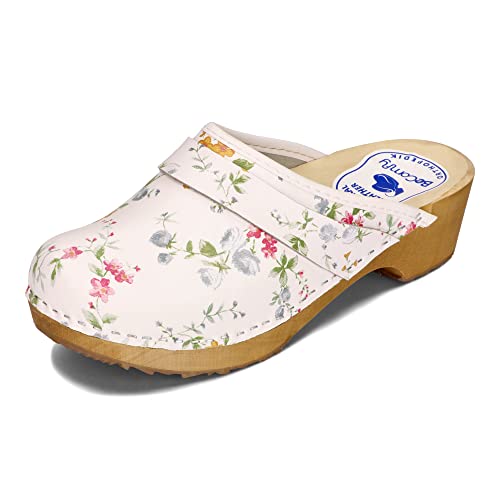 So süß! Diese originalen MB Clogs im Summer Flower Design sind der Hit für kleine Füße. Die schwedischen Clogs sehen nicht nur niedlich aus, sondern sind auch mega bequem. Das anatomisch geformte Fußbett aus Holz passt sich perfekt an Kinderfüße an. Einfach reinschlüpfen und loslaufen - ohne Schnürerei oder Klettverschluss. Das PU-Leder-Obermaterial ist robust und pflegeleicht, die Gummisohle gibt sicheren Halt. Mit 3 cm Absatzhöhe genau richtig für Kids. Perfekt für den Kindergarten, Spielplatz oder sommerliche Ausflüge. Dein Kind wird sie lieben! In schöner Blumen-Optik, die garantiert auffällt. Qualität aus Schweden - für happy Kinderfüße!