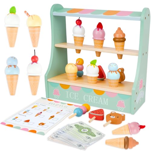 Holz-Eiscreme Spielset Für Kinder - Montessori Spielzeug Ab 3 Jahre
