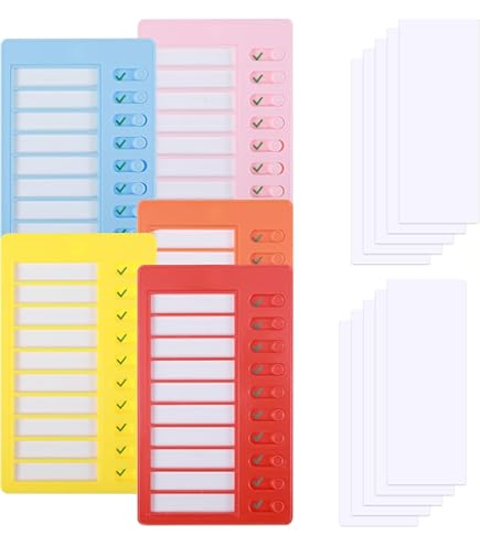 Hey, damit wird Organisation zum Kinderspiel! Diese 4 wiederverwendbaren Checklisten-Boards helfen Kindern, ihren Tag selbst zu strukturieren - ganz ohne Stress. Jedes Board misst 5,8 × 10 cm und ist damit ideal für kleine Hände. Aus robustem, geruchlosem Kunststoff gefertigt, halten sie auch mal was aus. Die abwischbare Oberfläche bedeutet: Kein Gefummel mit Radiergummis, einfach trocken abwischen und neu beschriften! Das geniale Schiebesystem lässt Kinder erledigte Aufgaben sichtbar abhaken - das macht richtig stolz und motiviert. Mit dabei sind 4 bunte Boards in Blau, Grün, Gelb und Pink plus 4 Aufkleber zum Individualisieren. Der integrierte Schlüsselanhänger macht die Boards zum mobilen Begleiter für Schule, Homeschooling oder Reisen. Ob Morgenroutine, Hausaufgaben oder Abendrituale - damit behalten Kinder den Überblick und lernen spielerisch Selbstorganisation. Besonders praktisch für Kinder mit ADHS oder alle, die etwas Strukturhilfe brauchen. Einfach clever!