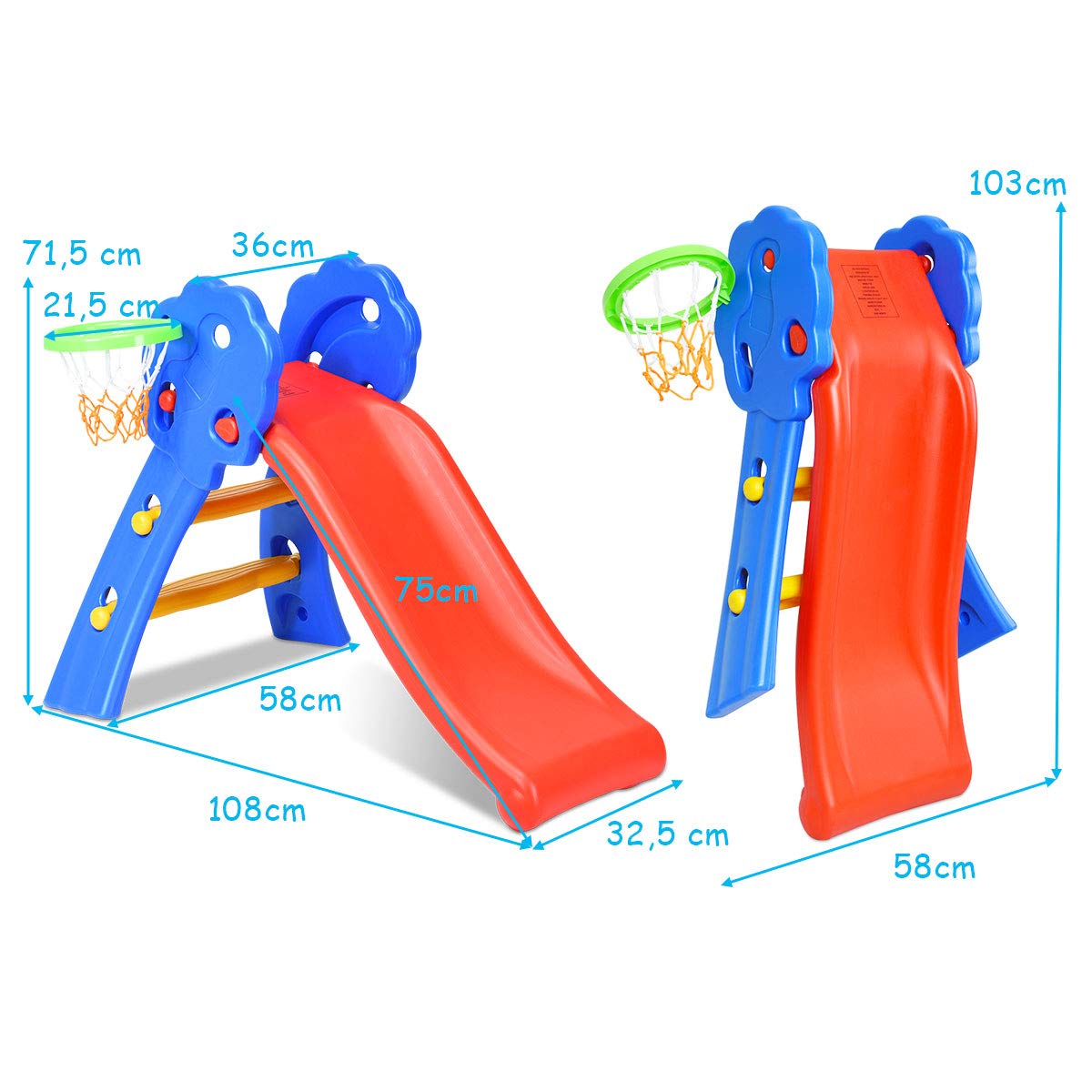 CHIIRAKU Kinder Rutsche 175cm Mit Basketballkorb - 3in1 Kletter-Spielset
