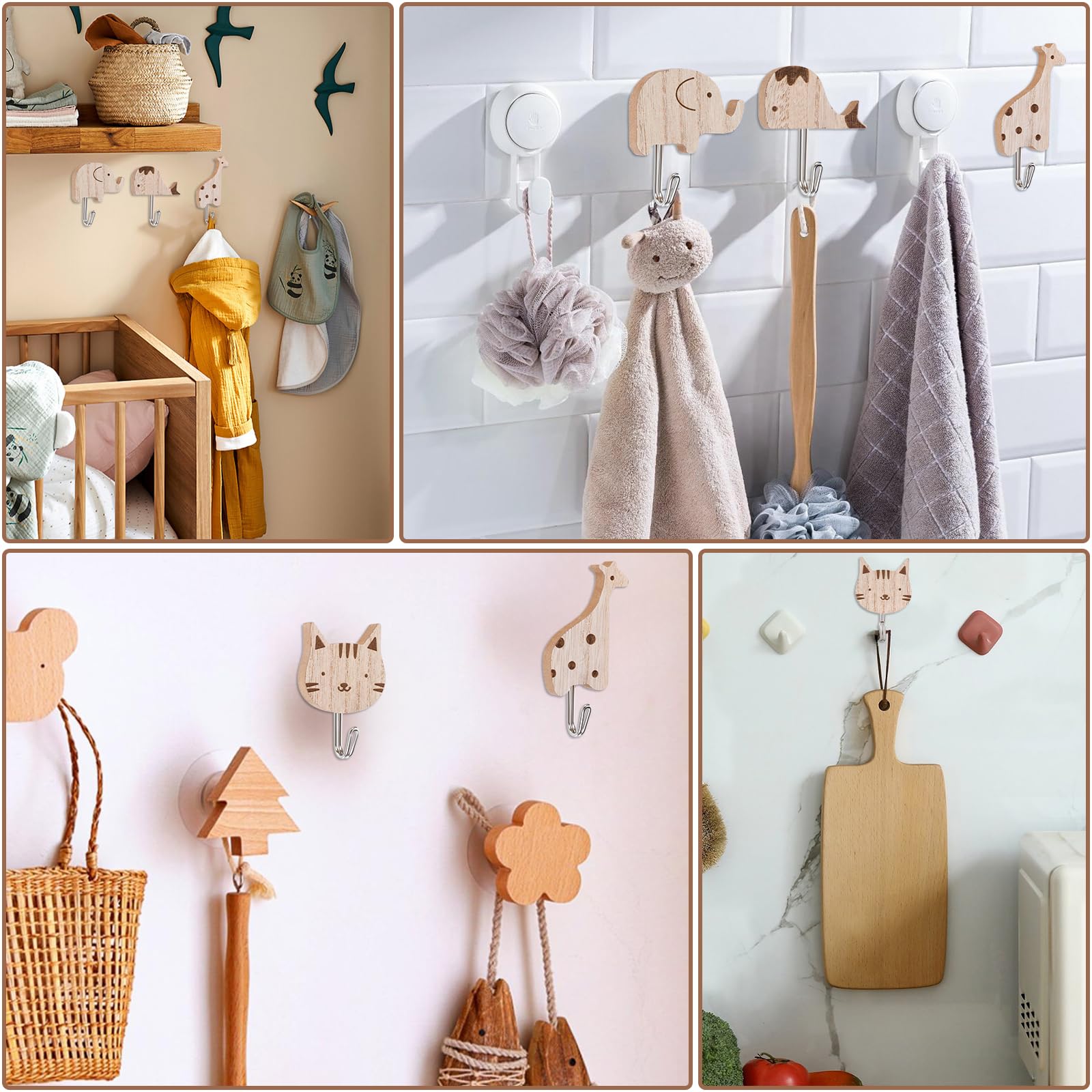 Wie süß sind denn diese Tier-Haken?! 6 verschiedene Motive - Kaninchen, Giraffe, Elefant, Löwe, Wal und Katze - verwandeln jedes Kinderzimmer in einen Zoo voller Freude.