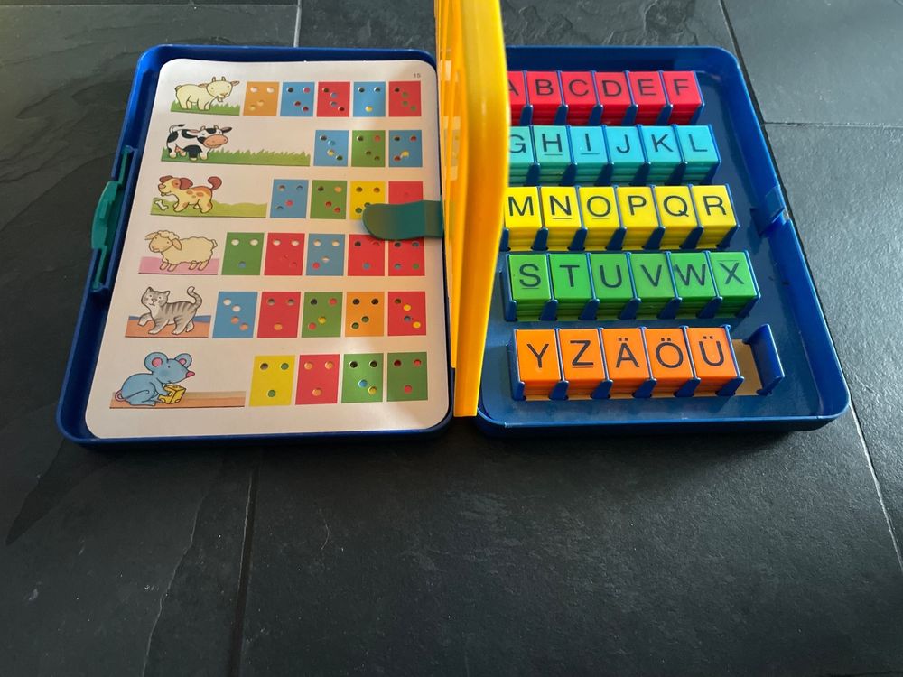 Learning by playing! Dieses bunte Bingo-Spiel macht Kindern richtig Spaß beim Buchstaben lernen. Mit 6 doppelseitigen Spielbrettern und 26 Buchstaben-Chips, die auf einer Seite Tiere zeigen. Super für Vorschulkinder und Erstklässler. Das Coole: Statt langweiliger Plastikchips könnt ihr Münzen, Knöpfe oder Bohnen als Abdeckung nehmen - so wird jedes Spiel einzigartig! Einfache Regeln: Tier oder Buchstabe ansagen, suchen und abdecken. Wer zuerst fünf in einer Reihe hat, gewinnt! Perfekt für die Eltern-Kind-Zeit und um spielerisch die ersten Wörter zu lernen. Ein Geschenk, das nicht nur Spaß macht, sondern auch clever ist!
