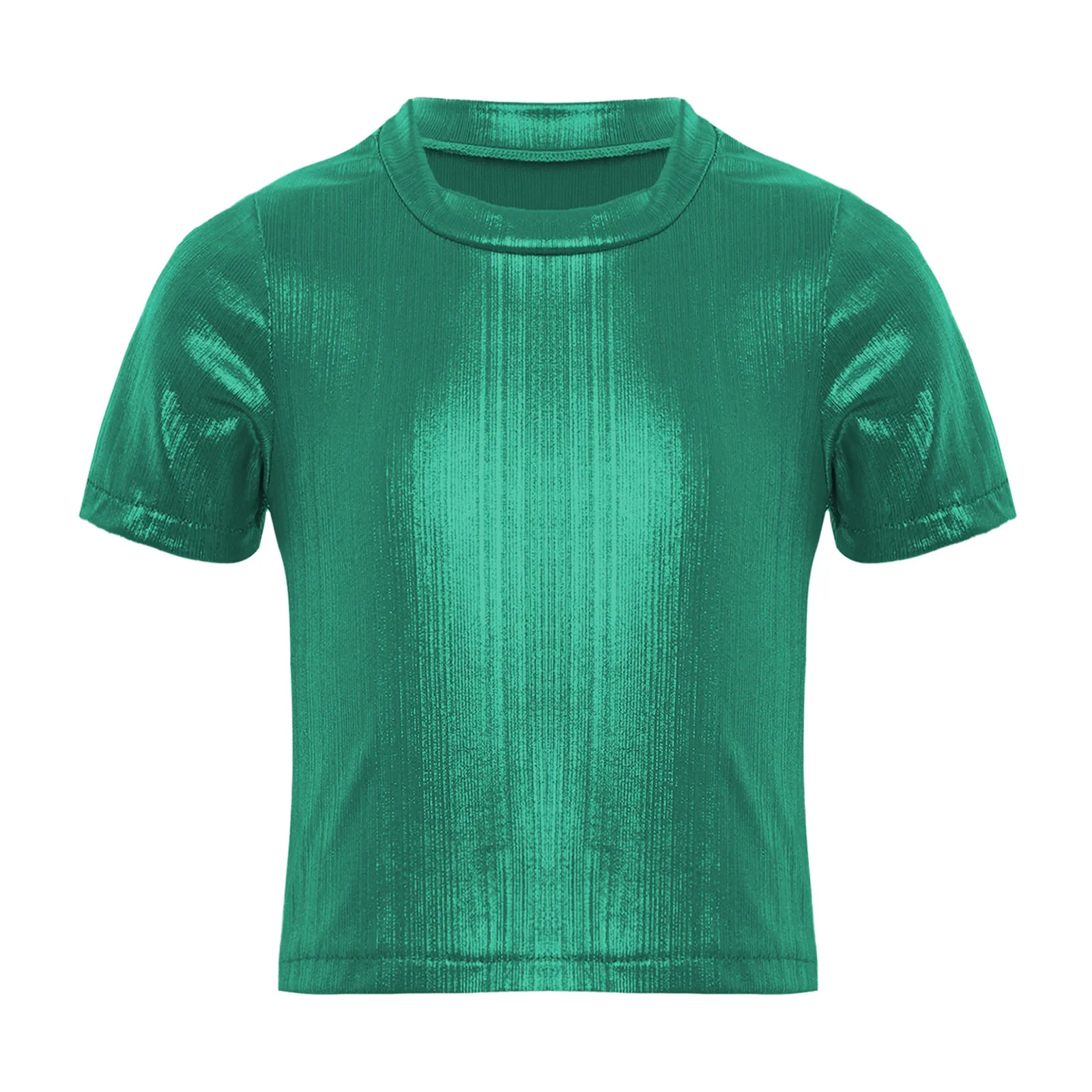 Metallic Glänzend T-Shirt Kinder - Tanz Shirt Kurzarm Für Hip Hop Jazz