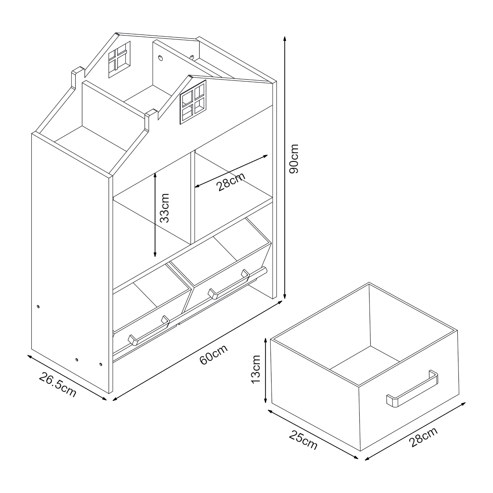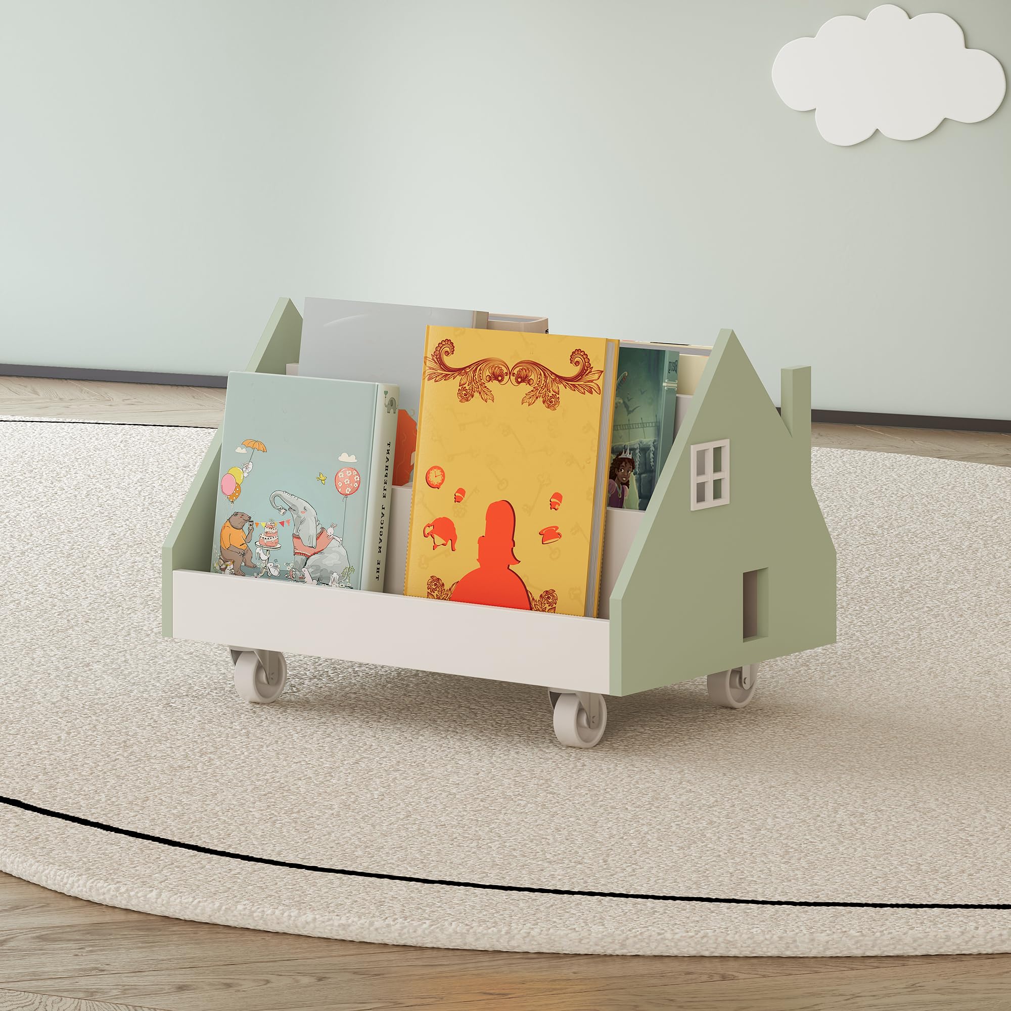 Mobiles Bücherregal Für Kinder Vipsali - Hausförmiges Regal Mit Rollen 50x33x34 Cm