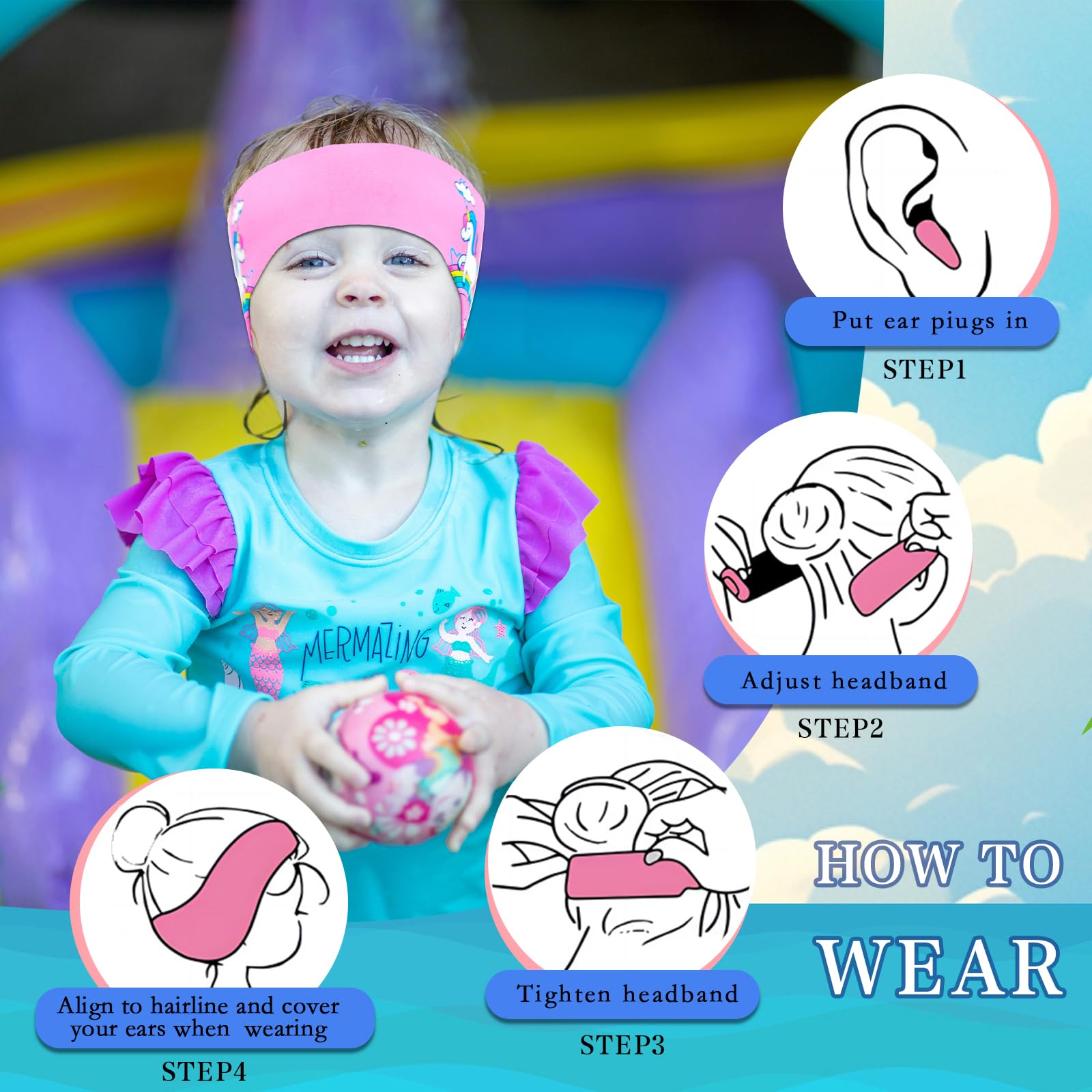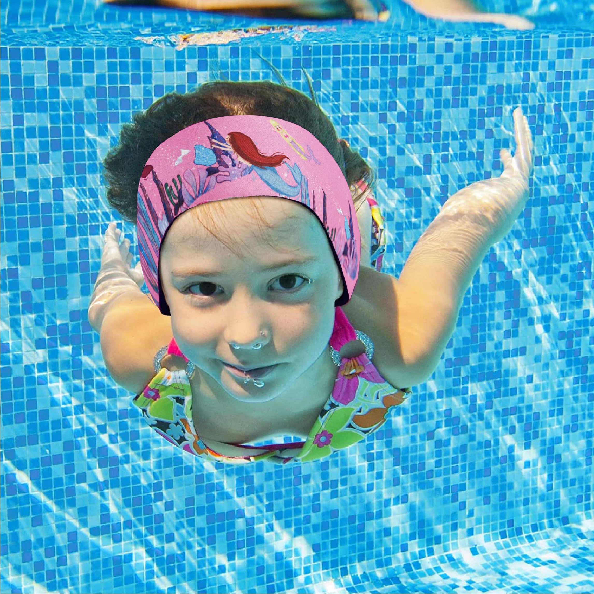 KGDUYC Schwimm Stirnband Kinder - Wasserdichtes Ohrenband Mit Meerjungfrauen-Muster Pink