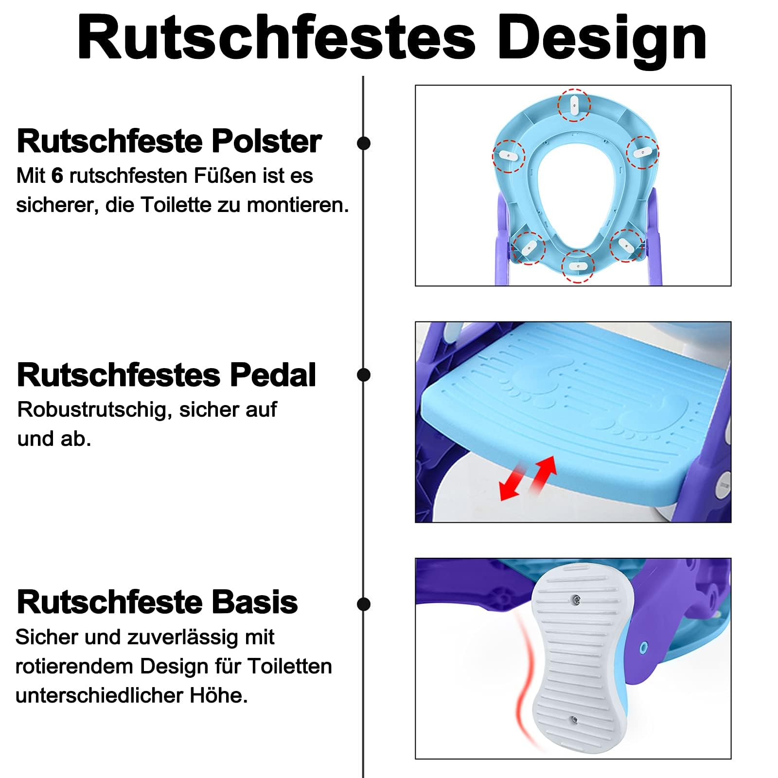 Der perfekte Übergang vom Töpfchen zur großen Toilette! Dieser weiche WC-Verkleinerer in süßem Lila macht es den Kleinen leicht. Mit zwei praktischen Griffen können sich die Kinder sicher festhalten, und die Rückenlehne gibt zusätzlichen Halt. Ab 18 Monaten geeignet - genau das richtige Alter um mit dem Trockenwerden zu starten. Der Sitz ist schön groß und bequem gepolstert, kein hartes Plastik das drückt. Einfach auf die normale Toilette setzen und schon passt die Öffnung perfekt für Kinderpopos. Waschbar und wiederverwendbar - einfach unter dem Wasserhahn abspülen oder in der Badewanne reinigen. Macht den Toilettengang für die Kleinen viel weniger angsteinflößend. Die Griffe geben Sicherheit und die weiche Polsterung sorgt für Komfort. Praktisch für zu Hause, aber auch super für unterwegs bei Oma oder im Urlaub. Einfach zusammenklappen und mitnehmen! So wird der Abschied vom Töpfchen zum Kinderspiel. Die Kleinen fühlen sich wie die Großen - aber mit dem nötigen Komfort und Sicherheit. Ein Muss für alle Eltern deren Kinder langsam trocken werden!