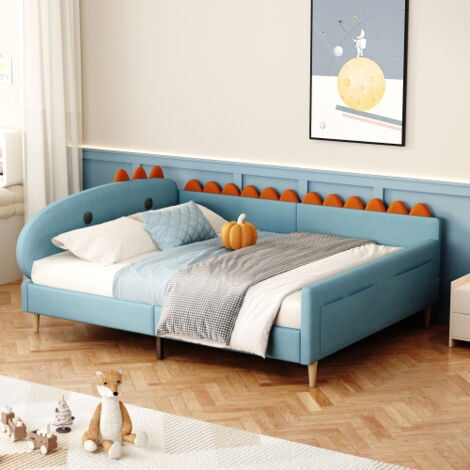 MQLAE Dinosaurier Kinderbett 140x200 - Graues Polsterbett Mit Lattenrost