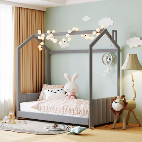 Oh wie süß! Dieses Kinderbett mit Bären-Kopfteil ist der Traum jedes Kindes! Maße: 90x200cm - perfekt zum Wachsen! Aus weichem Samtstoff - super kuschelig für zarte Kinderhaut! Mit Holzlattenrost und Metallstütze - mega stabil bis 120kg! Schutzgitter beidseitig - dein Kind fällt nicht raus! In Grau oder Weiß - passt in jedes Kinderzimmer! Einfache Montage - zu zweit in 30 Minuten fertig! Matratze nicht inklusive - bitte separat bestellen! Mach deinem Kind eine Freude - hier schläft es sich wie im Märchen!