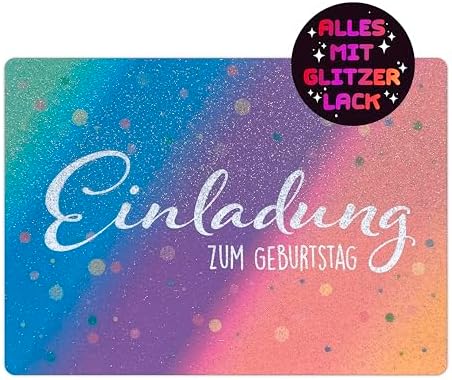 Dein Kind plant den ultimativen Geburtstag? Mit diesen fröhlichen Regenbogen-Einladungskarten wird die Vorfreude bei allen Gästen sofort geweckt! Das bunte Design und die praktische Handhabung machen diese Karten zum perfekten Party-Starter. Was im Set enthalten ist: • 15x Einladungskarten im Regenbogen-Design • 15x passende Umschläge • 15x Briefumschlag-Aufkleber • Besonderheit: Ohne Kinderschokolade Warum diese Einladungskarten? Sie kombinieren süßes Design mit praktischer Funktionalität! Die Vorderseite bietet Platz für einen kleinen Riegel oder andere Überraschungen, die Rückseite ist übersichtlich gestaltet für alle wichtigen Infos. Einfache Handhabung: 1. Datum, Uhrzeit und Ort eintragen 2. Eventuell kleine Überraschung aufkleben 3. In Umschlag stecken und zukleben 4. An die kleinen Gäste verteilen Hochwertige Qualität: • Papier: Stabil und beschichtet • Farben: Leuchtend und fröhlich • Druck: Beidseitig, wasserfest • Verarbeitung: Saubere Kanten und Ecken Perfekt für: • Kindergeburtstage ab 3 Jahren • Regenbogen-Partys und bunte Feste • Einschulungsfeiern und Kita-Feste • Als Bastelgrundlage für kreative Kinder Tipp: Lass dein Kind die Karten mit Buntstiften personalisieren - so wird jede Einladung zu einem Unikat! Lieferung: Komplett-Set mit 15 Karten und Umschlägen - bereit für die beste Party ever!