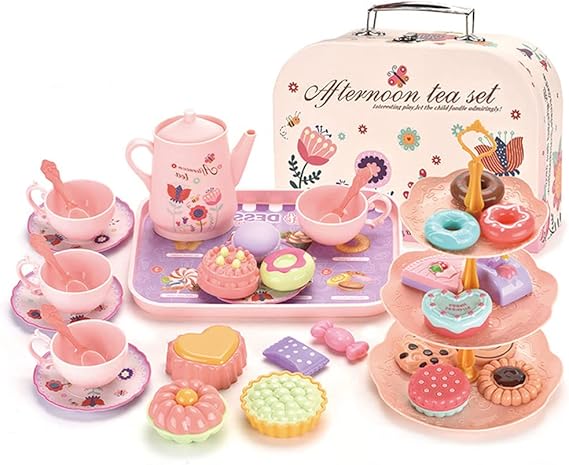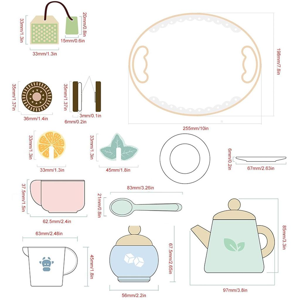 Hallo Eltern und Kinder! Dieses bezaubernde Holz-Teeservice von joozlewelt bringt Kinderaugen zum Strahlen. Aus biologischem Buchenholz und mit ungiftigen Farben auf Wasserbasis ist es absolut sicher für die Kleinen. EN71-zertifiziert - da kannst du beruhigt sein! Im Set ist alles dabei, was für eine perfekte Teeparty needed wird: 1 Teekanne mit Unterkanne, 2 kleine und 1 große Teetasse, Untertassen, Rührlöffel, Teebeutel und sogar süße Desserts wie Brötchen, Zitronenscheiben, Kekse, Smoothie-Becher und Lutscher. Mit den Maßen 30 x 18,2 x 6,3 cm ist es ideal für kleine Hände. Die karierte Tischdecke und Aufbewahrungstasche machen das Spiel noch echter. Kinder lieben es, in die Rolle von Gastgebern zu schlüpfen und ihre Fantasie spielen zu lassen. Perfekt für die Entwicklung von Kreativität und sozialen Fähigkeiten! Ob alleine oder mit Freunden - hier entstehen lustige Spielstunden. Auch super für die Eltern-Kind-Interaktion - macht zusammen eine Teeparty! Das Holz ist robust und hält auch wildere Spielstunden aus. Wunderschön verpackt ist es das ideale Geschenk für Geburtstage, Weihnachten oder einfach so. Ein Klassiker, der nie aus der Mode kommt und Generationen begeistert. Einfach zeitloses Spielvergnügen!