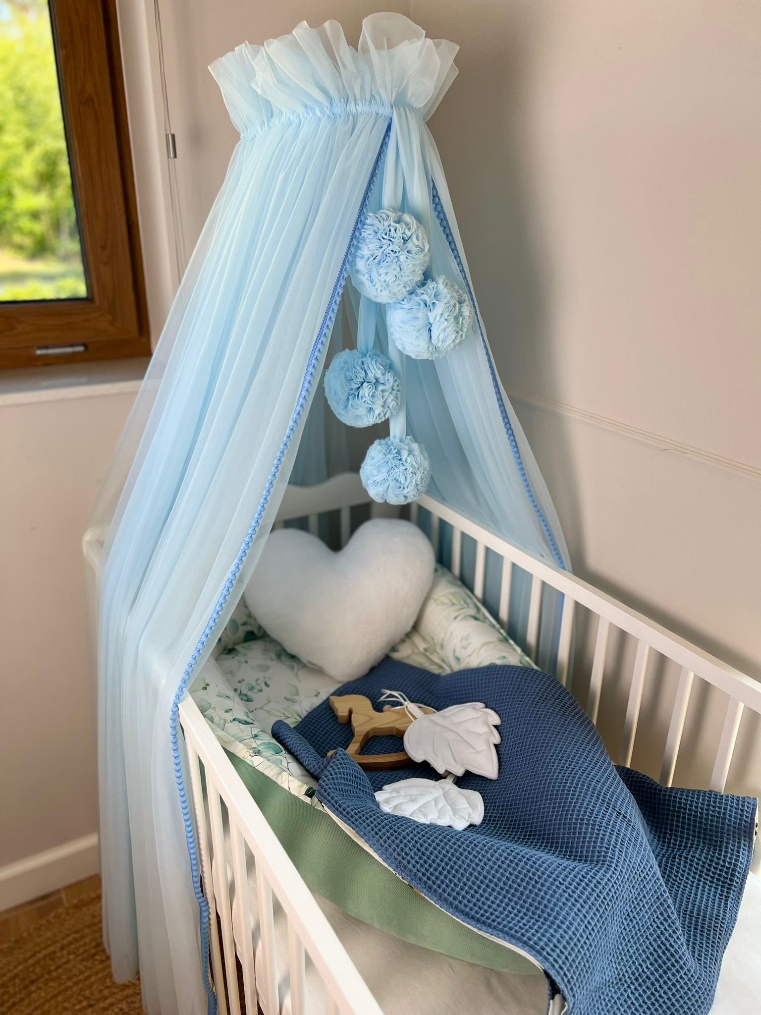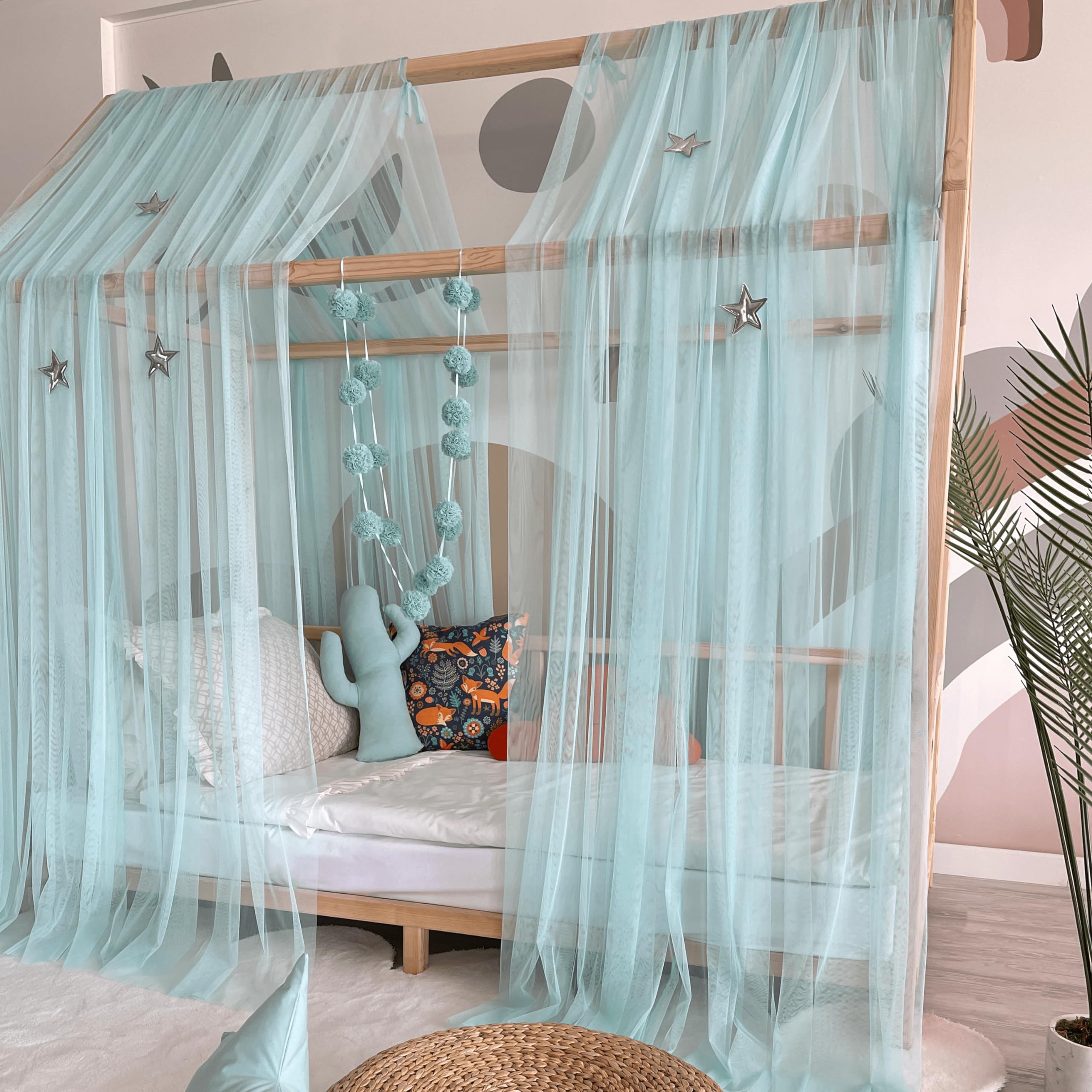 KOELL Baldachin Kinderzimmer - Betthimmel Mit Pompons 240-300cm Höhenverstellbar