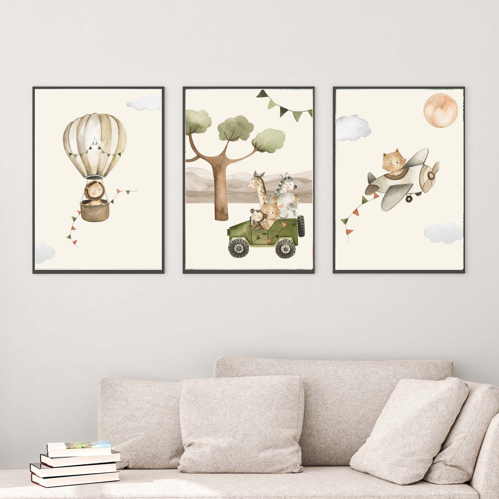 Safari Poster Set Für Kinderzimmer - Zebra Giraffe Löwe Wandbilder
