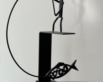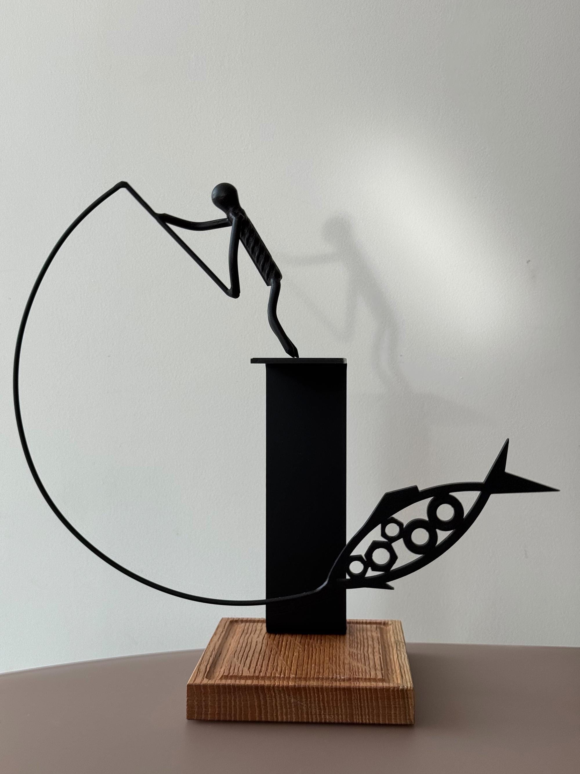 Kinetic Fishing Sculpture - Fischer Balance Kunst Aus Metall