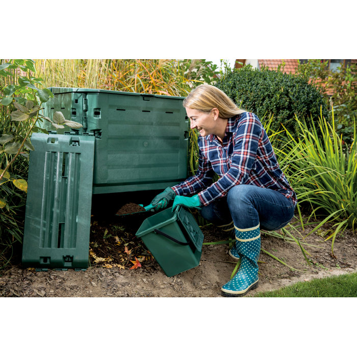 Kompostieren war noch nie so einfach! Der Graf Thermo-King mit stolzen 900 Litern Fassungsvermögen ist dein bester Helfer im Garten. Mit den zwei großen Einfüllklappen kommt der Biomüll ganz bequem rein. Das Thermolen-Material und das optimale Belüftungssystem sorgen für schnelle Kompostierung - da freuen sich deine Pflanzen! Das Easy-lock-System macht die Montage zum Kinderspiel, ganz ohne Werkzeug. Der Wind-Fix-Deckel hält sicher zu und reguliert die Luftzirkulation je nach Jahreszeit. Maße: 100x100x100 cm in schönem Grün - passt in jeden Garten. Ohne Bodengitter, aber dafür mit jeder Menge Platz für deine Gartenabfälle. Ob Grasschnitt, Gemüsereste oder Laub - hier wird alles zu wertvollem Kompost. Einfach aufstellen, befüllen und dich über die tolle Erde freuen! Dein Garten wird es dir danken, und die Umwelt auch.