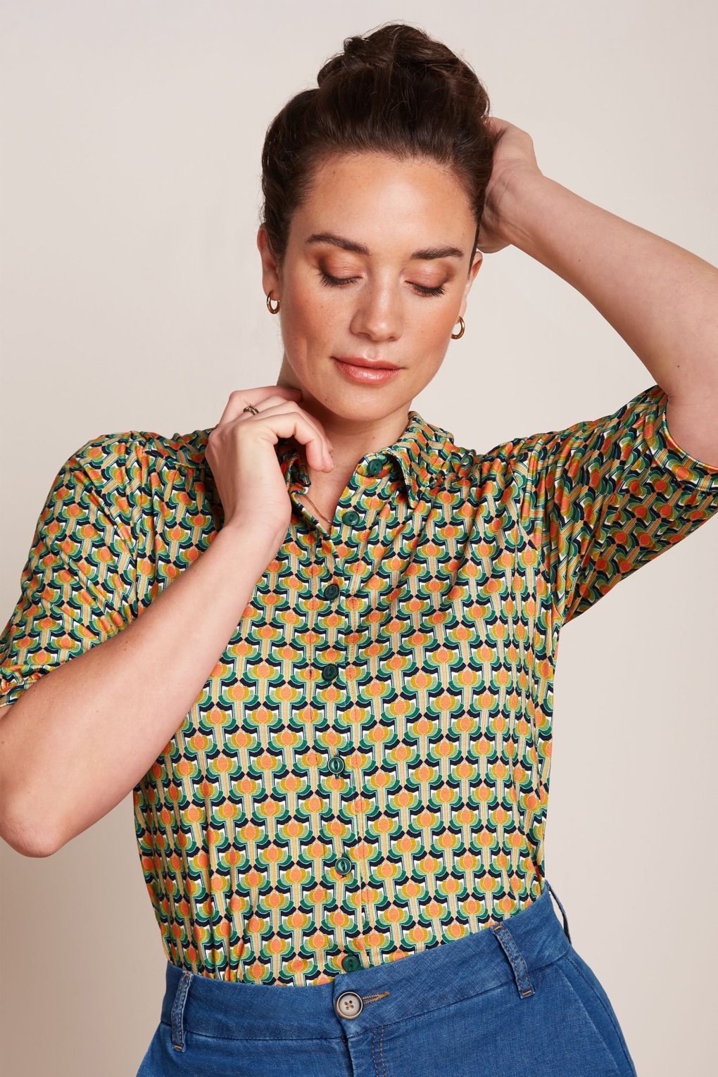 King Louie Bella Bluse Damen - Mit Reverskragen & Puffärmeln In Viskose