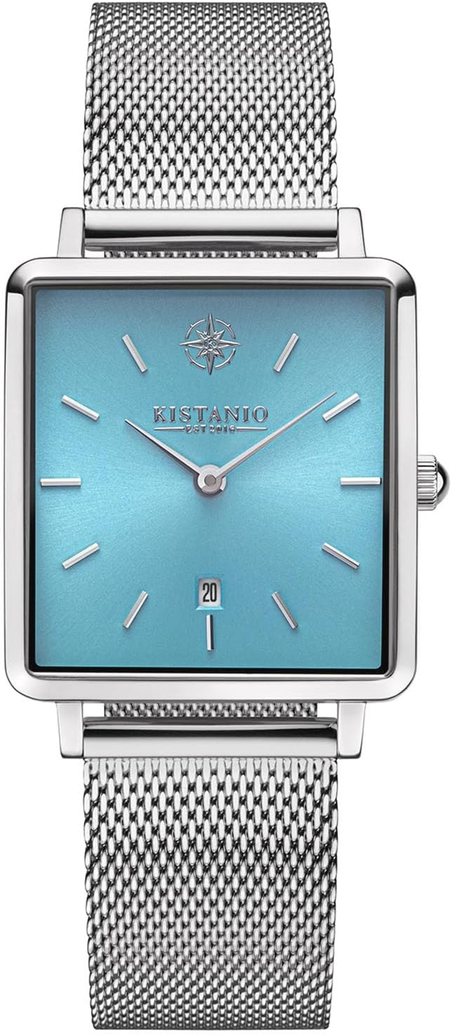 Kistanio Carre Damenuhr Flach - Saphirglas Milanaiseband 26x28mm Edelstahl