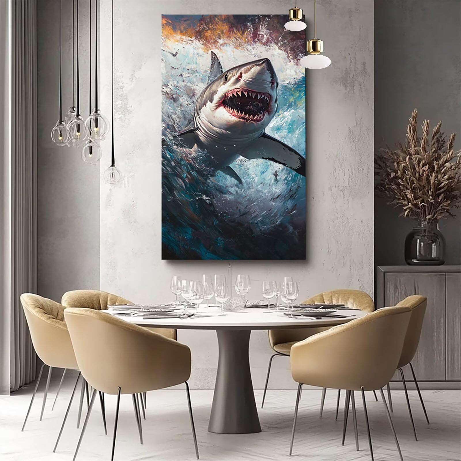 Tauche ein in die Welt der Malerei! Dieses 'Malen nach Zahlen'-Set mit einem beeindruckenden Hai-Motiv macht dich zum Künstler. Enthalten sind eine 30x40 cm große Leinwand, Acrylfarben, 3 Pinsel und eine nummerierte Vorlage. Einfach die Felder mit den entsprechenden Farben ausmalen – kein Vorwissen nötig. Perfekt zum Entspannen, als kreative Pause oder als gemeinsames Projekt mit Familie oder Freunden. Das fertige Bild ist ein toller Hingucker im Wohnzimmer, Büro oder Schlafzimmer und eignet sich auch super als persönliches Geschenk.
