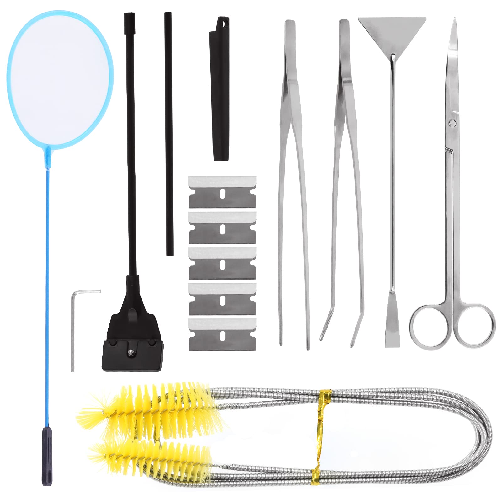 Wokape 15-tlg Aquarium Werkzeuge Kit - Edelstahl Aquascaping Set Mit Ersatzklingen