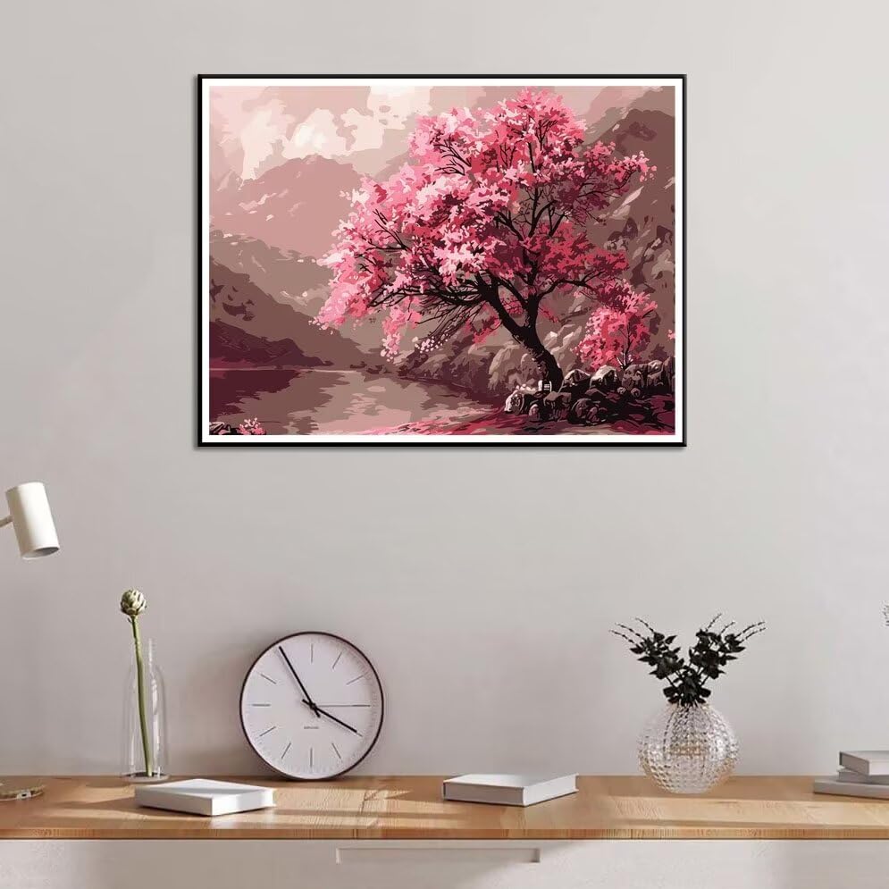 Malen Nach Zahlen Kit Erwachsene - Japanische Kirschblüten Landschaft 40x50cm