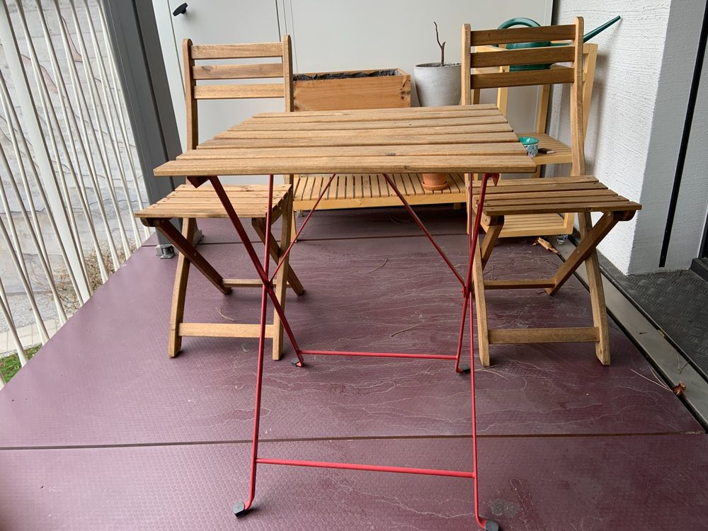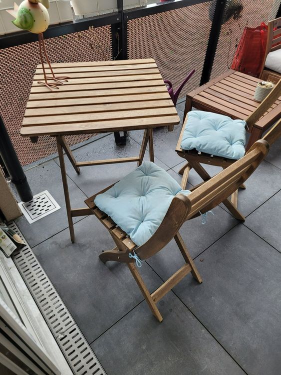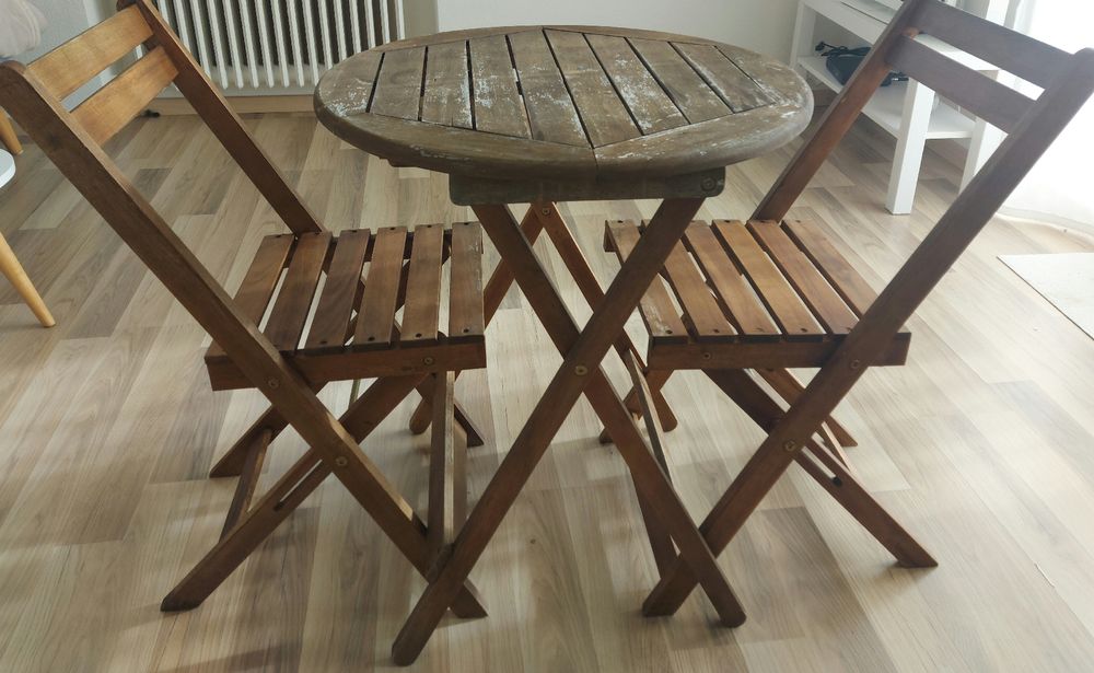 Endlich mehr Platz auf dem Balkon! Dieses 3-teilige Bistro-Set ist genau das Richtige für alle mit wenig Platz. Ein runder Tisch und zwei Stühle - alles klappbar und super einfach zu verstauen. Maße Tisch: 60x60x70 cm (aufgeklappt), Stühle: 40x43x80 cm. Tisch hält 50 kg aus, jeder Stuhl sogar 100 kg! Ist aus Metall mit ner wetterfesten Beschichtung, also kein Rost und keine Sonnenschäden. Die X-Verstärkung macht's extra stabil. Und das Beste: Kein lästiges Zusammenbauen! Einfach aufklappen und los geht's. Perfekt für Balkon, Terrasse, Garten oder sogar Camping. In schickem Beige passt's in jede Umgebung. Einfach mit nem feuchten Tuch abwischen - fertig. So macht Draußensitzen richtig Spaß!