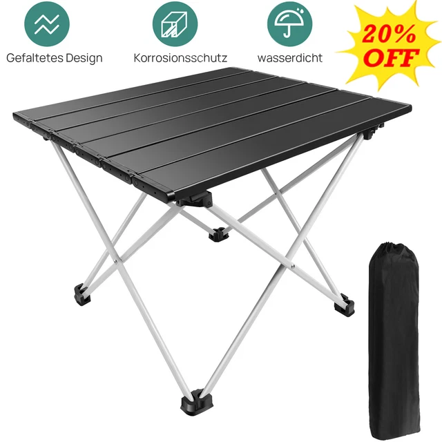 Perfekt für unterwegs! Dieser RILOOP Campingtisch ist dein neuer bester Freund für Ausflüge, Gartenpartys und Camping-Trips. \\n\\nMaße: 60x80 cm Tischplatte, 69 cm hoch - genau die richtige Größe für 4-6 Personen. Und er trägt bis zu 30 kg! \\n\\nDie Tischplatte aus MDF sieht aus wie Stein, ist aber viel leichter und genauso stabil. Dazu ein Rahmen aus Stahllegierung - leicht aber extrem belastbar. \\n\\nZwei Sicherungshaken sorgen für absolute Stabilität. Kein Wackeln, auch nicht bei vollem Belag! \\n\\nZusammengeklappt nur 6 cm dick - passt in jeden Kofferraum! Mit 2,8 kg Gewicht super leicht zu tragen. \\n\\nAufbau? Dauert keine Minute! Einfach aufklappen, Haken fixieren - fertig! So schnell war noch kein Tisch einsatzbereit. \\n\\nOb Picknick, Gartenfest, Camping oder Balkon - dieser Tisch ist immer dabei. Kompakt, stylisch und mega praktisch! \\n\\nEndlich ein Tisch, der wirklich hält, was er verspricht: Leicht, stabil und immer dabei. Dein Allrounder für draußen!