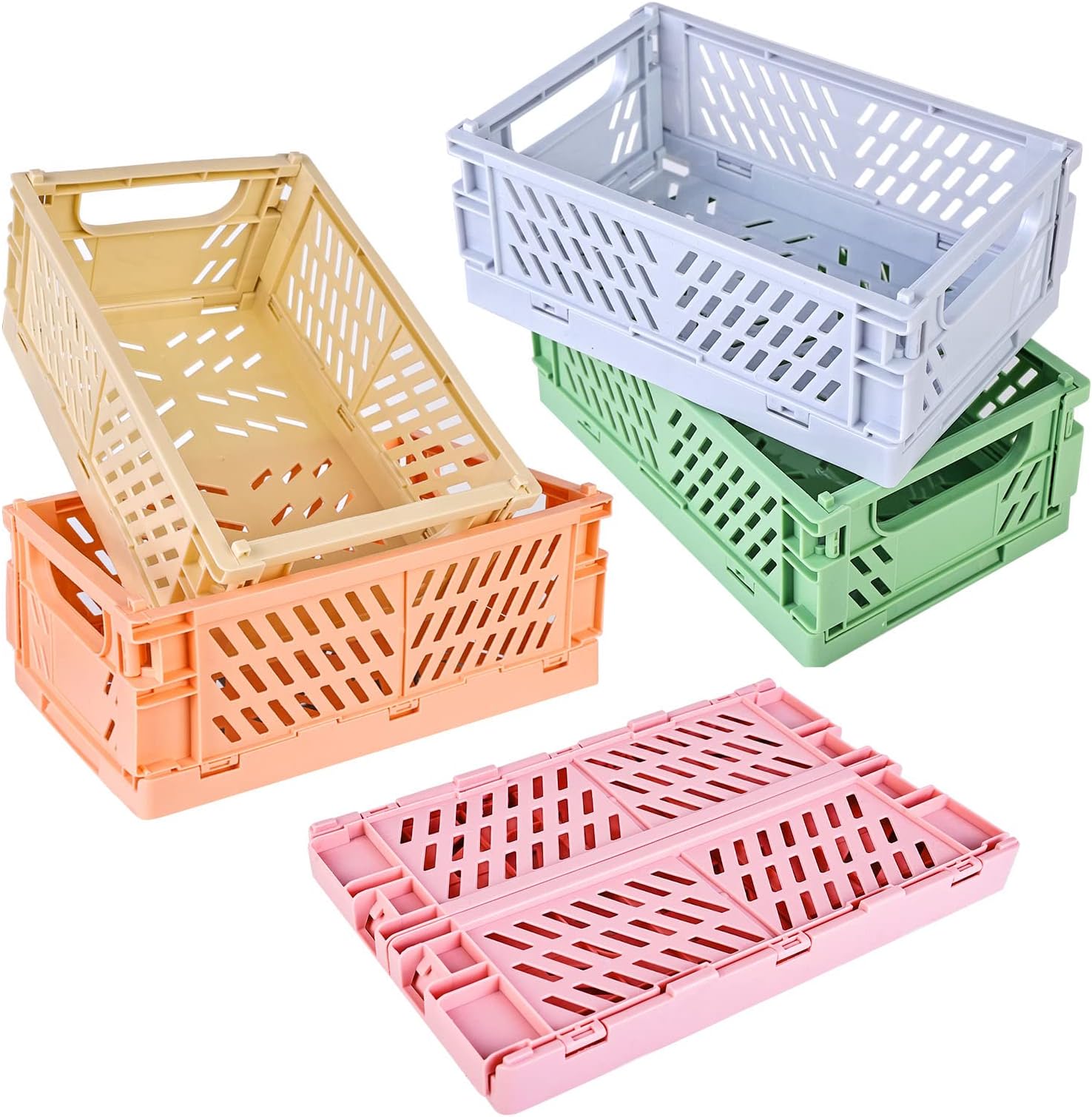 Ordnung muss sein! Diese 2 klappbaren Aufbewahrungskörbe von Pmueuff in Hellblau und Weiß sind die perfekte Lösung für Chaos in Schubladen und Regalen. Mit 25x16x10cm ideal für kleine Gegenstände.\\n\\nAus robustem ABS-Kunststoff, wasserdicht und kratzfest. Mit praktischem Tragegriff und dekorativen Lochmustern. Bei Nichtgebrauch einfach zusammenklappen - platzsparend und praktisch.\\n\\nPerfekt für Kosmetik, Schreibwaren, Spielzeug oder Küchenutensilien. Sieht nicht nur gut aus, sondern bringt auch Ordnung in dein Zuhause. Einfach ausklappen und losräumen!