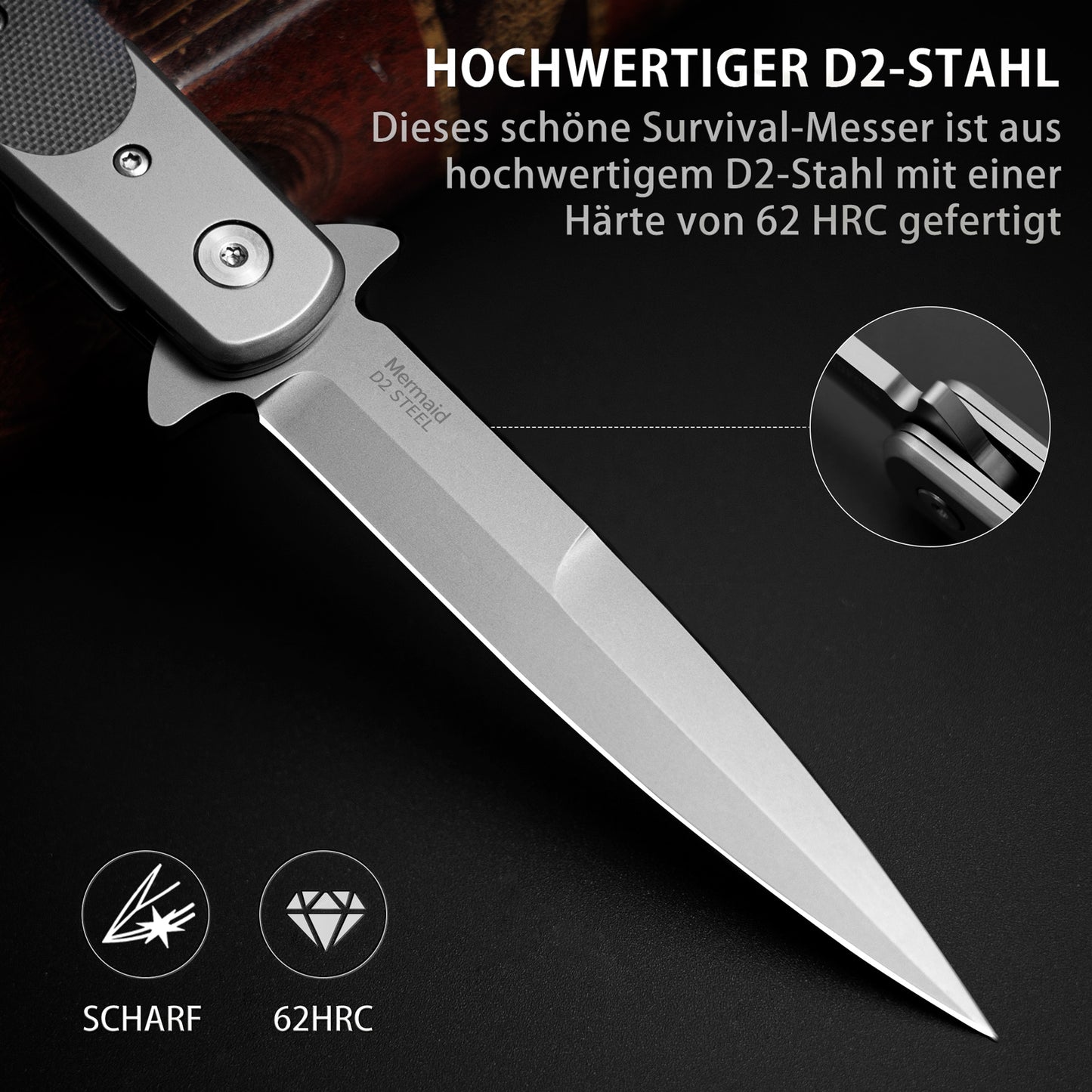 Ein Messer für echte Abenteurer! Dieses HARNDS Klappmesser mit Klinge aus hochwertigem Sandvik 14C28N Stahl (58-60 HRC) ist ein echter Alleskönner. Die 3,15 mm starke Klinge ist extrem scharf, rostfrei und langlebig. Der G10 Harzfasergriff liegt perfekt in der Hand, ist hitze- und kältebeständig und bietet rutschfesten Griff auch bei Nässe. Mit Kugellager-Mechanismus für schnelles, smoothies Öffnen und sicheres Schließen. Nur 66 g leicht, Gesamtlänge 177 mm (gefaltet 101 mm) - passt in jede Tasche. Mit praktischem Gürtelclip für rechts oder links. Ob beim Camping, Angeln, Wandern oder Survival-Training - dieses Messer ist immer dabei und absolut zuverlässig. Auch als Geschenk für Outdoor-Fans ein echter Hit!