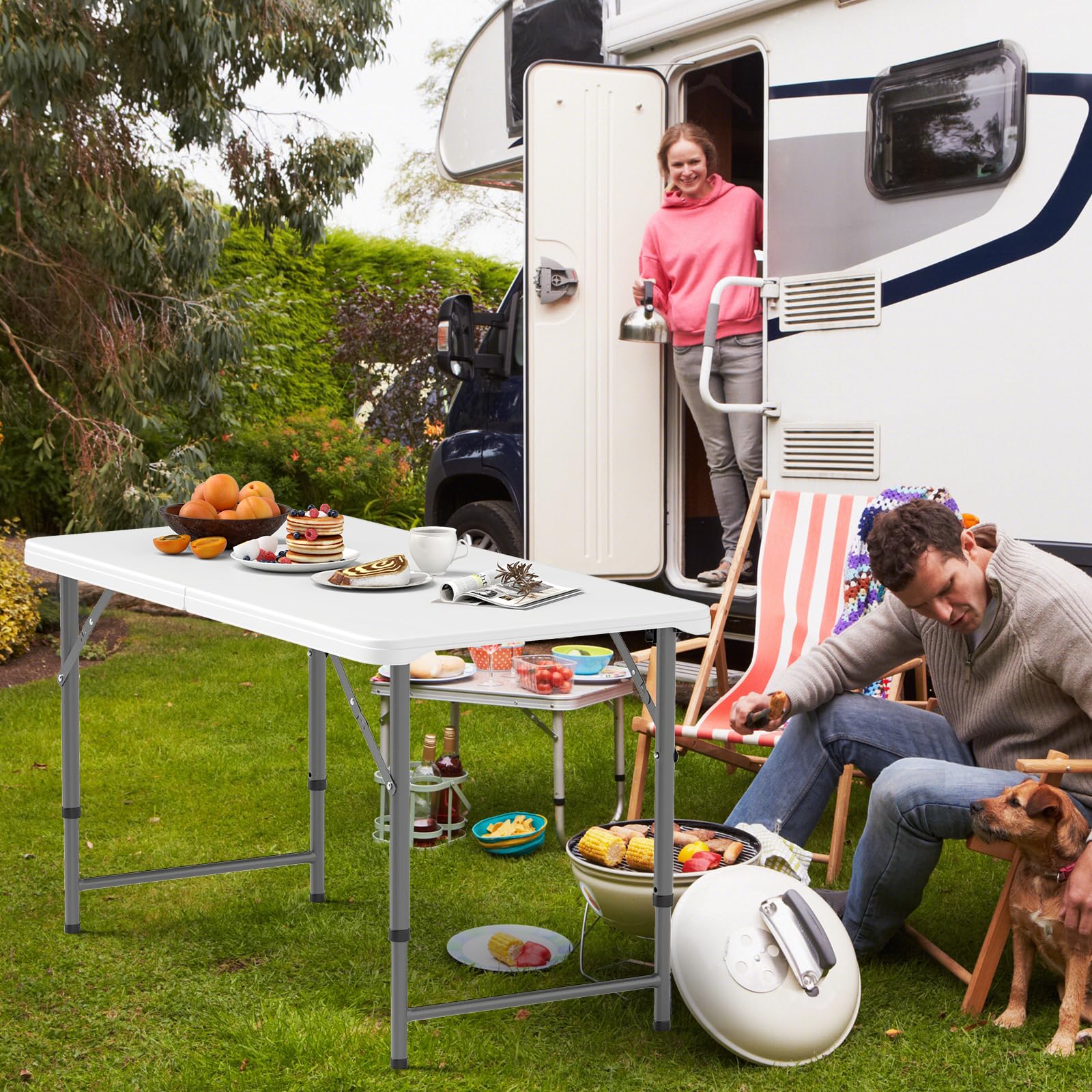 Perfekt für Camping, Picknick oder Gartenparty! Dieser GYMAX Klapptisch ist ein echter Allrounder. Mit 86x86cm bietet er Platz für 4 Personen und trägt satte 150kg! Die HDPE-Tischplatte ist absolut wetterfest, hitzebeständig und verschleißfest.