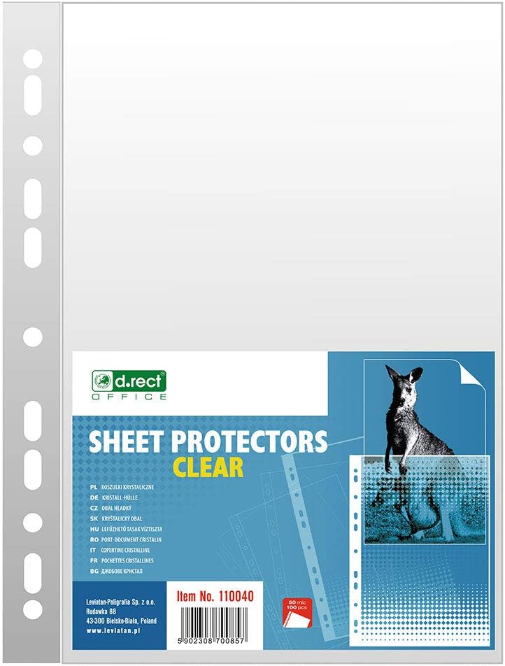 100 Klarsichthüllen A4 - 50 Mikron, Gelocht Für Ordner