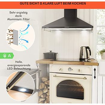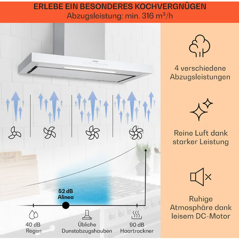 Frische Küchenluft garantiert! Diese 90cm Dunstabzugshaube von Klarstein im Edelstahl-Design entfernt effektiv Dämpfe und Gerüche. Leistungsstark mit 577,8 m³/h Luftstrom - aber trotzdem super leise. Drei Leistungsstufen für jede Kochsituation. Mit WLAN-Steuerung per App - bequem von überall bedienbar. Energieeffizienzklasse A++ spart Stromkosten. Spülmaschinenfester Aluminium-Fettfilter für einfache Reinigung. Inklusive LED-Beleuchtung für perfekte Ausleuchtung. Einfache Montage mit detaillierter Anleitung. Maße: 99,5x40x59,5cm (BxTxH). Perfekt für Induktion, Gas, Elektro und Keramikkochfelder. Deine Lösung für eine immer frische Küche!
