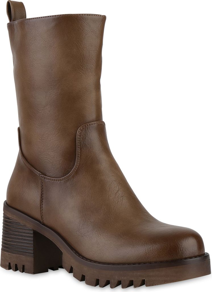 VAN HILL Damen Stiefeletten - Klassische Boots Mit Blockabsatz