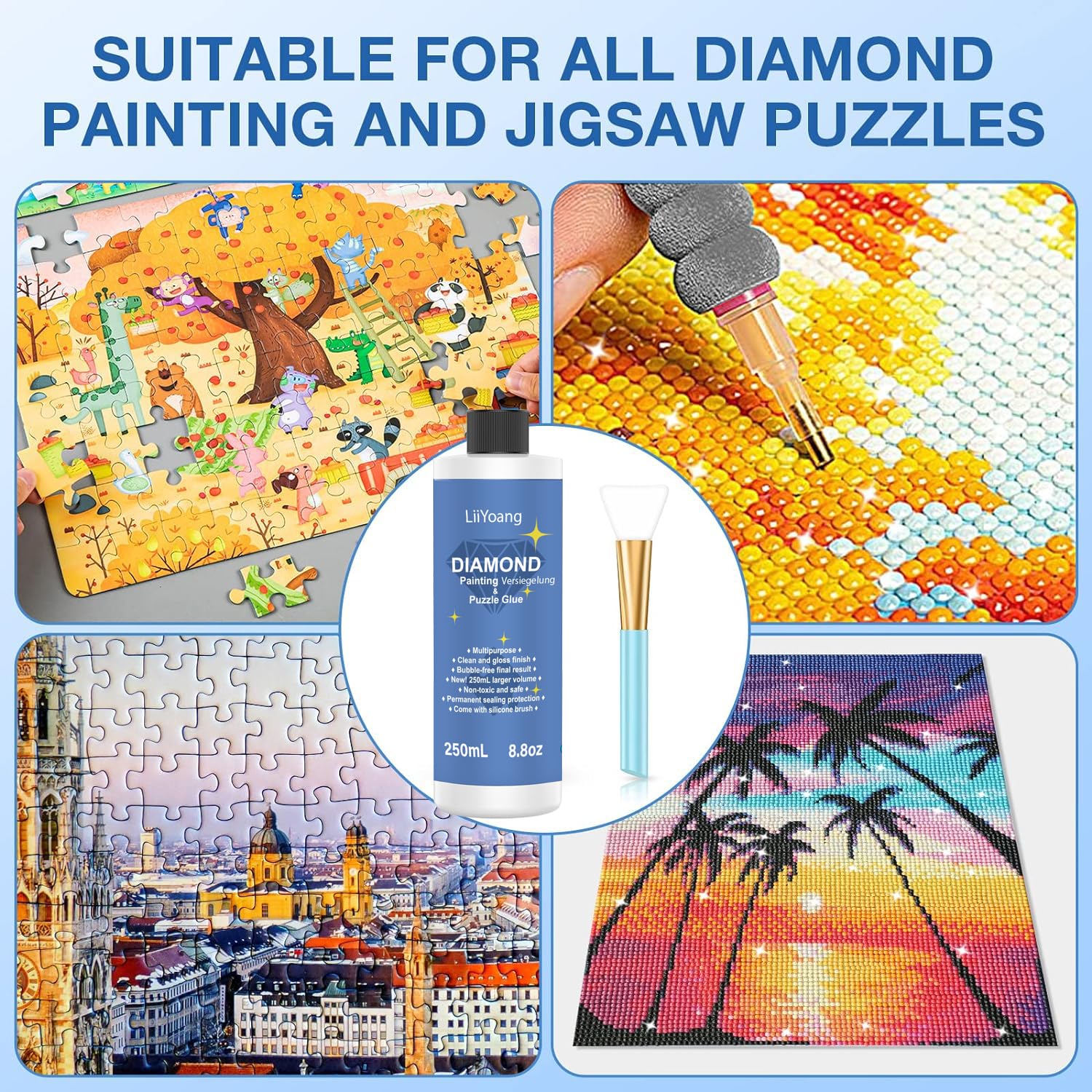 Diamond Painting Versiegelung 240ml - Transparenter Kleber Mit Bürste Für Glitzerbilder