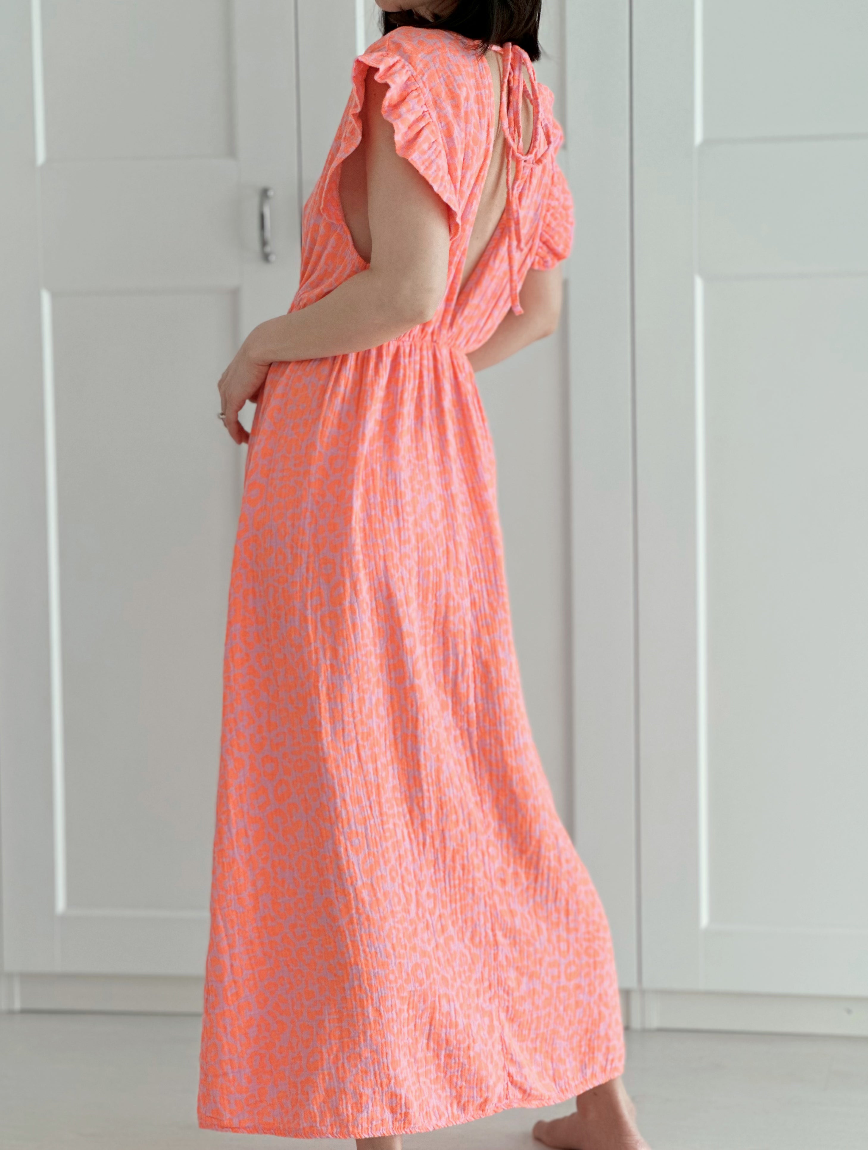 Musselin Kleid Damen Ärmellos - Leinen Midikleid Mit Taschen & Blumendruck