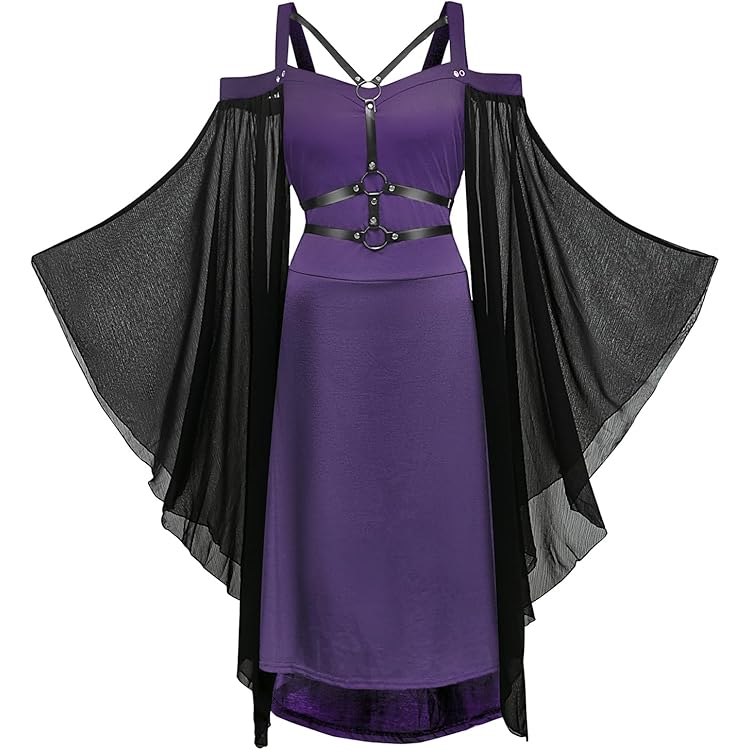 Wow, dieses Gothic Kleid von LATH.PIN ist der absolute Hingucker! Perfekt für Halloween, Mittelalterfeste oder Cosplay. Das schulterfreie Design mit den fließenden Fledermausärmeln aus Mesh sieht einfach spektakulär aus. Die Rücken-Schnürung lässt sich anpassen für perfekte Passform.\n\nAus Polyester und Mesh - atmungsaktiv und bequem zu tragen. Der asymmetrische Rock und der Retro-Stil machen jedes Outfit unvergesslich. Ob als Hexe, Vampir oder einfach nur als stylische Gothic-Dame - damit wirst du garantiert zum Mittelpunkt der Party. Der Stoff ist weich und hautfreundlich, also kein Kratzen. Mit Reißverschluss hinten easy an- und auszuziehen. Für Bühnenauftritte, Themenpartys oder wenn du einfach mal aus der Reihe tanzen willst. Ein Kleid, das Geschichten erzählt!