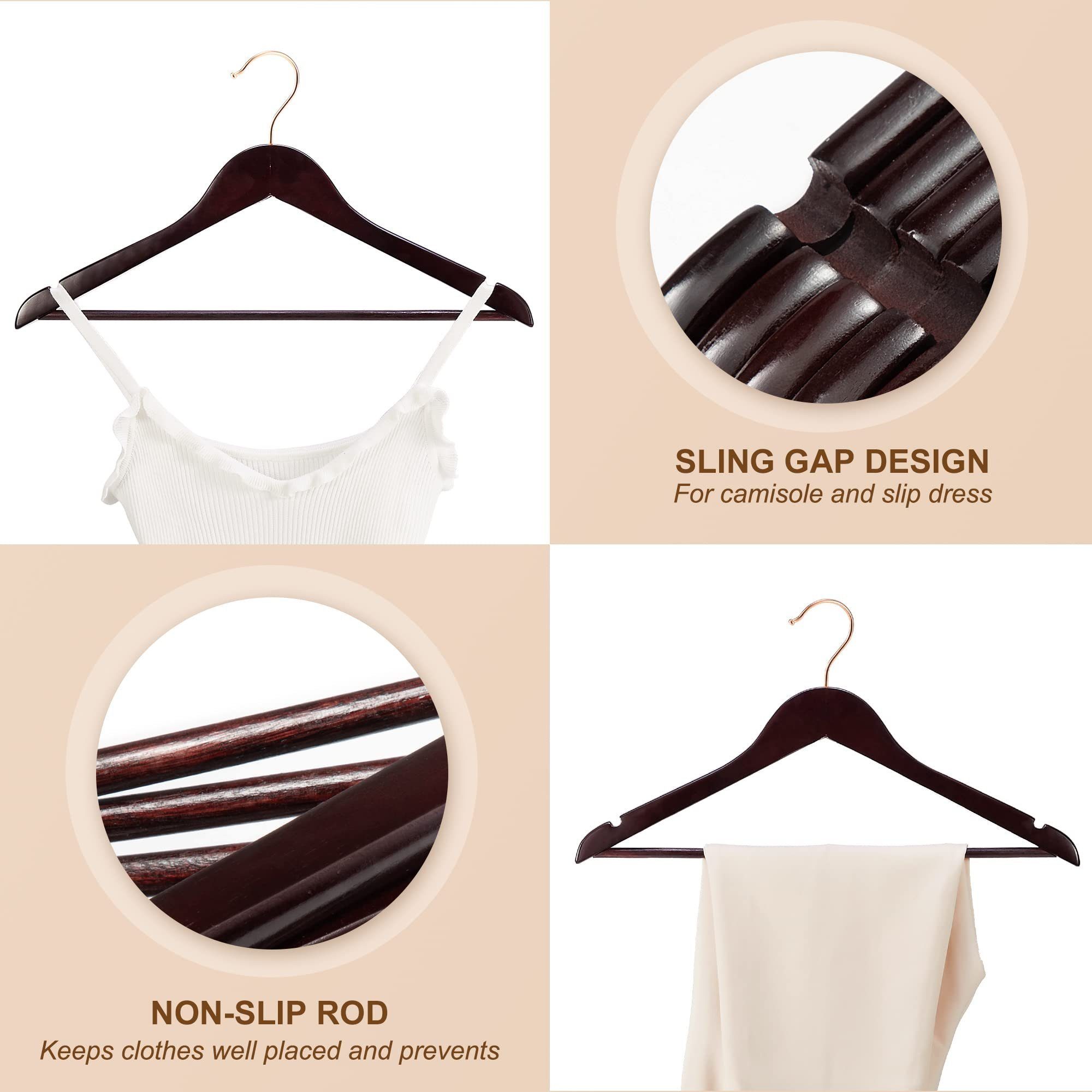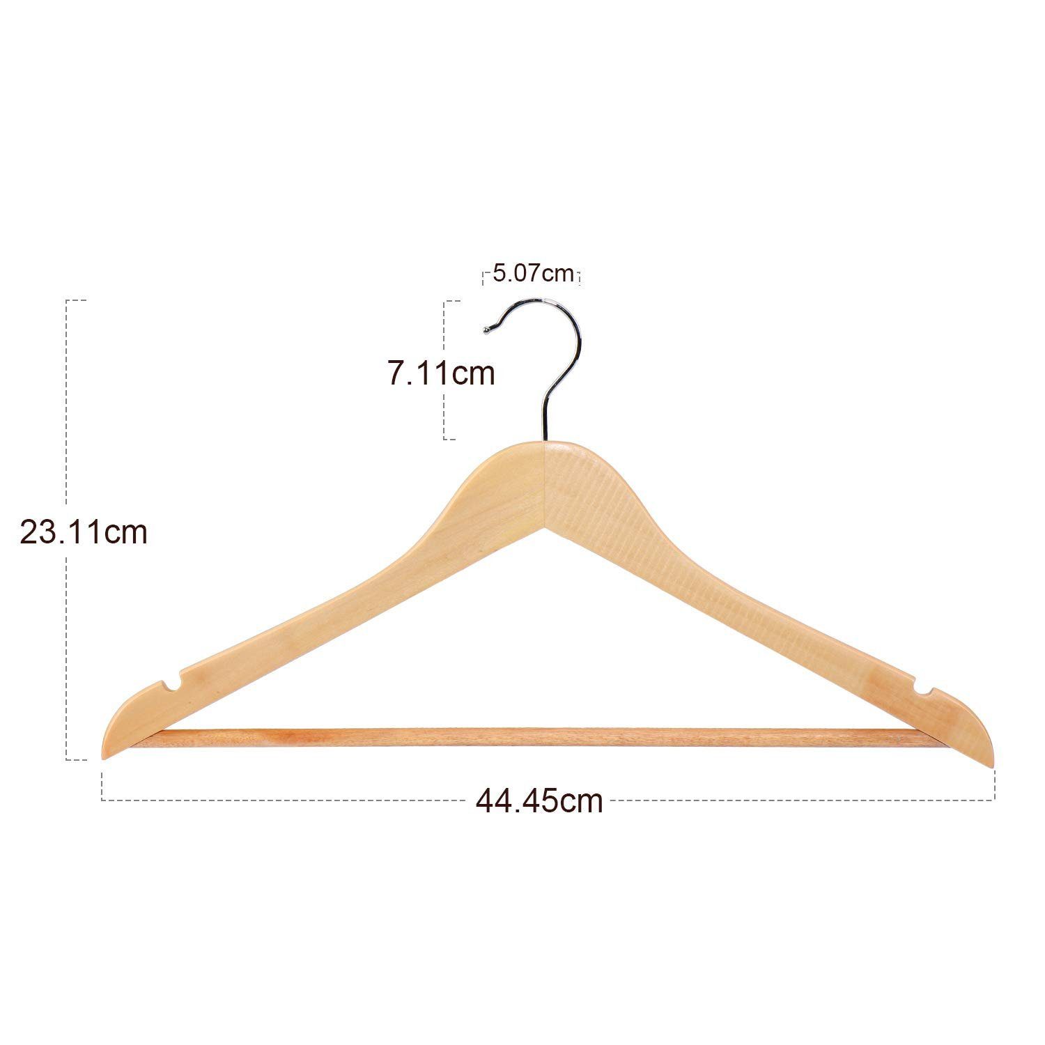 Im Set sind 10 Stück enthalten - perfekt um den ganzen Schrank aufzuräumen. Das schlanke Design spart Platz und die Holzqualität ist einfach top. Deine Kleidung wird es dir danken!
