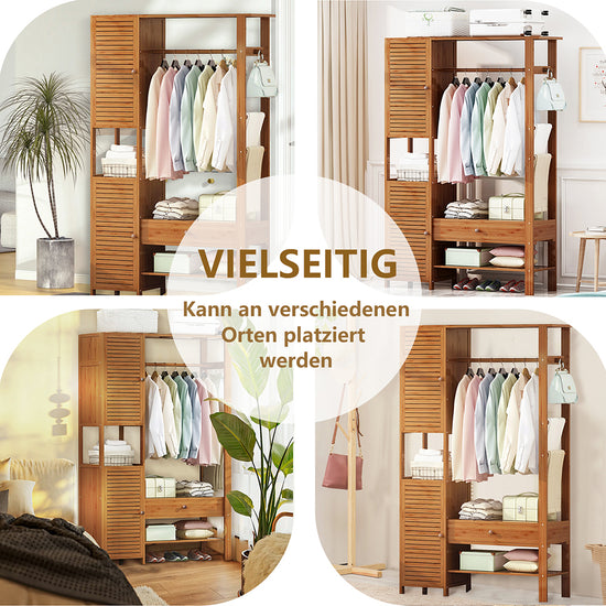 Dokiiovo Kleiderständer Bambus - Klappbarer Garderobenständer Mit Regal 160cm