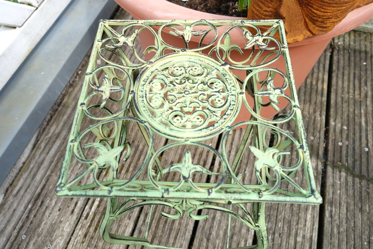 Kleiner Blumentisch Aus Eisen - 25cm Grün Für Drinnen & Draußen