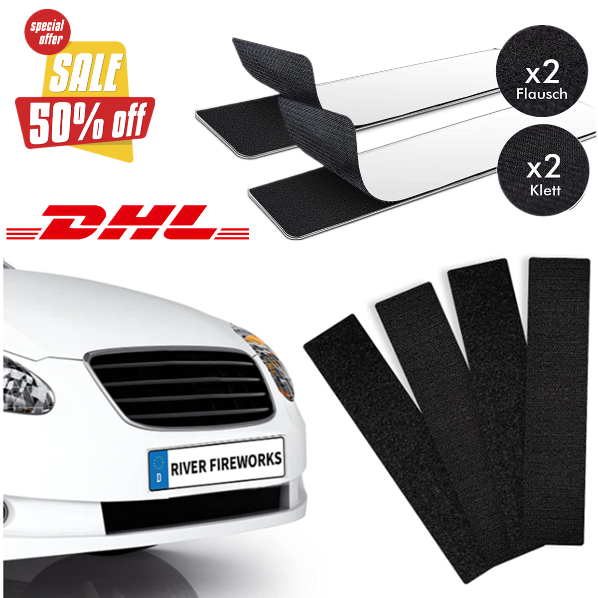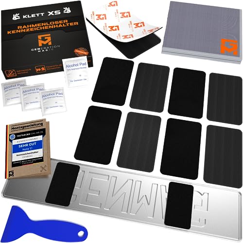 Unsichtbar aber extrem haltbar! Diese Klett-Kennzeichenhalter halten bombenfest - selbst bei 300km/h oder in der Waschstraße. Mit 3M-Kleber und 50x10cm Maßen passen sie für fast jedes Kennzeichen. Rahmenlos und super flach - kein störendes Design. Einfach zu montieren: Oberfläche reinigen, Klett anbringen, fertig! Unsichtbare Optik die dein Auto clean aussehen lässt. Im Set: 2 Halter, Schaber und Reinigungsstreifen. Auch für 3D-Kennzeichen geeignet. Mach dein Kennzeichen fest ohne lästige Schrauben oder Rahmen!