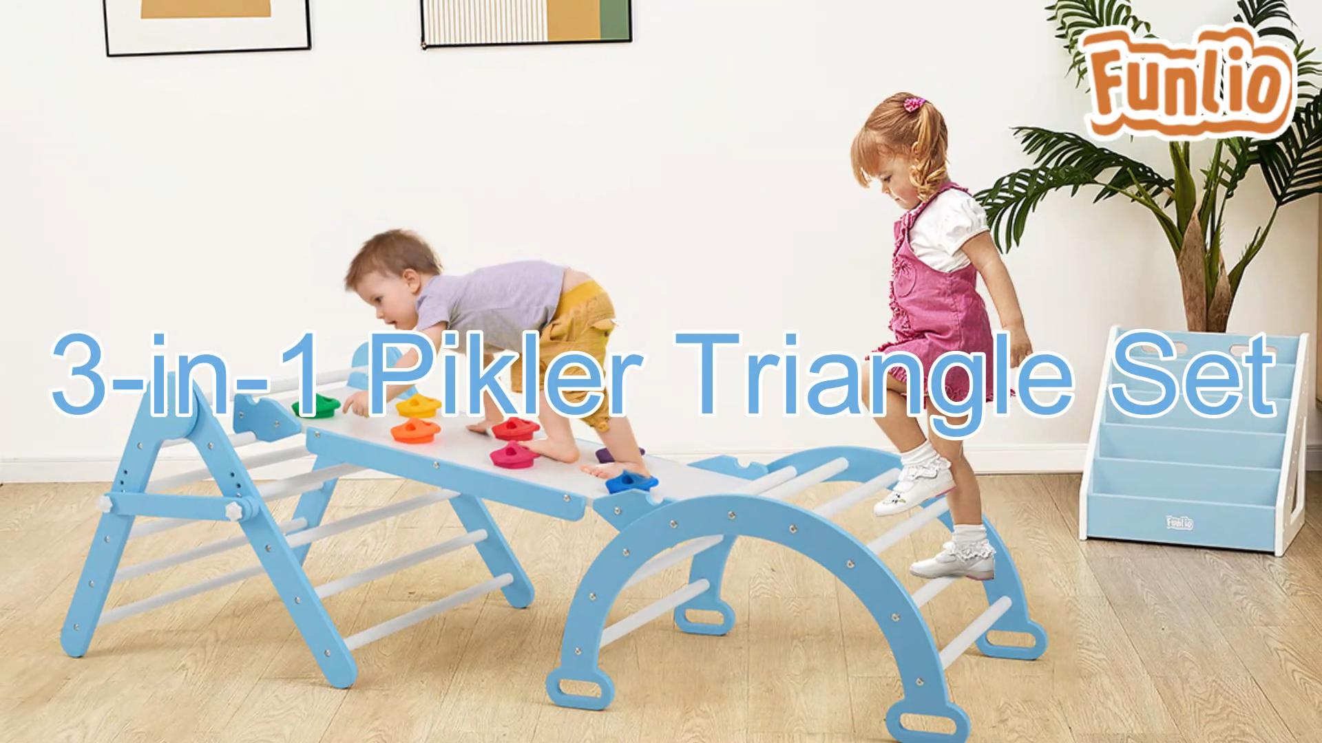 Das ultimative Spielabenteuer für kleine Entdecker! Dieses FUNLIO Montessori Kletterset besteht aus 3 Teilen: Kletterdreieck, Bogen und Rutsche mit Kletterfelsen. Alles aus stabilem Massivholz für Kinder von 2-5 Jahren (bis 60kg). Die Teile lassen sich vielfältig kombinieren - ob als Kletterparcours, Rutsche oder Spielhaus. Besonders praktisch: das Kletterdreieck ist faltbar und platzsparend verstaut. Vormontierte Muttern ermöglichen schnellen Aufbau in ca. 30 Minuten. Rutschfeste Pads und spezielle Halbmondrillen sorgen für Sicherheit. Höhenverstellbare Rutsche wächst mit dem Kind mit. Zertifiziert nach US CPC und EU CE Standards. Perfektes Geschenk für Geburtstage, Weihnachten oder einfach so! Fördert Motorik, Kreativität und macht einfach riesig Spaß!