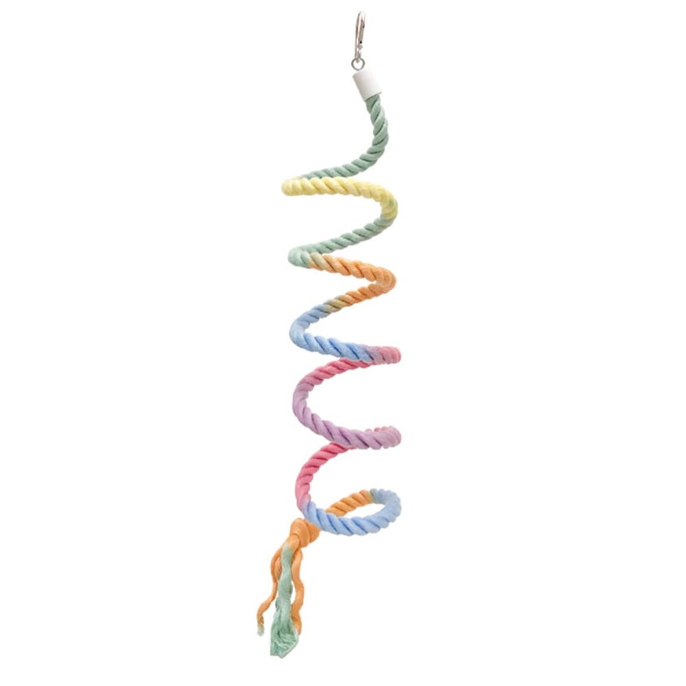 Deine Vögel werden dieses bunte Seil lieben! Die flexible Sitzstange mit bunten Farbverläufen weckt die Neugier von Papageien, Wellensittichen, Nymphensittichen und anderen kleinen bis mittelgroßen Vögeln. Mit eingebautem Stahldraht ist das Seil super biegsam - du kannst es in jede gewünschte Form bringen, ohne dass es bricht oder sich verformt. Die Baumwollumwicklung ist schonend für die Krallen deiner Vögel und bietet perfekten Halt beim Klettern. An beiden Enden sind feste Schrauben und Muttern angebracht, sodass du das Seil einfach im Käfig befestigen kannst. Deine Vögel können darauf klettern, sitzen, spielen und sogar daran knabbern - das vertreibt Langeweile und fördert die Bewegung. Erhältlich in zwei Größen: 35 cm (klein) und 80 cm (groß), perfekt für verschiedene Käfiggrößen. Ein vielseitiges Spielzeug das nicht nur Spaß macht, sondern auch zur natürlichen Bewegung deiner Vögel beiträgt. Einfach installieren und zusehen, wie deine gefiederten Freunde es erobern!