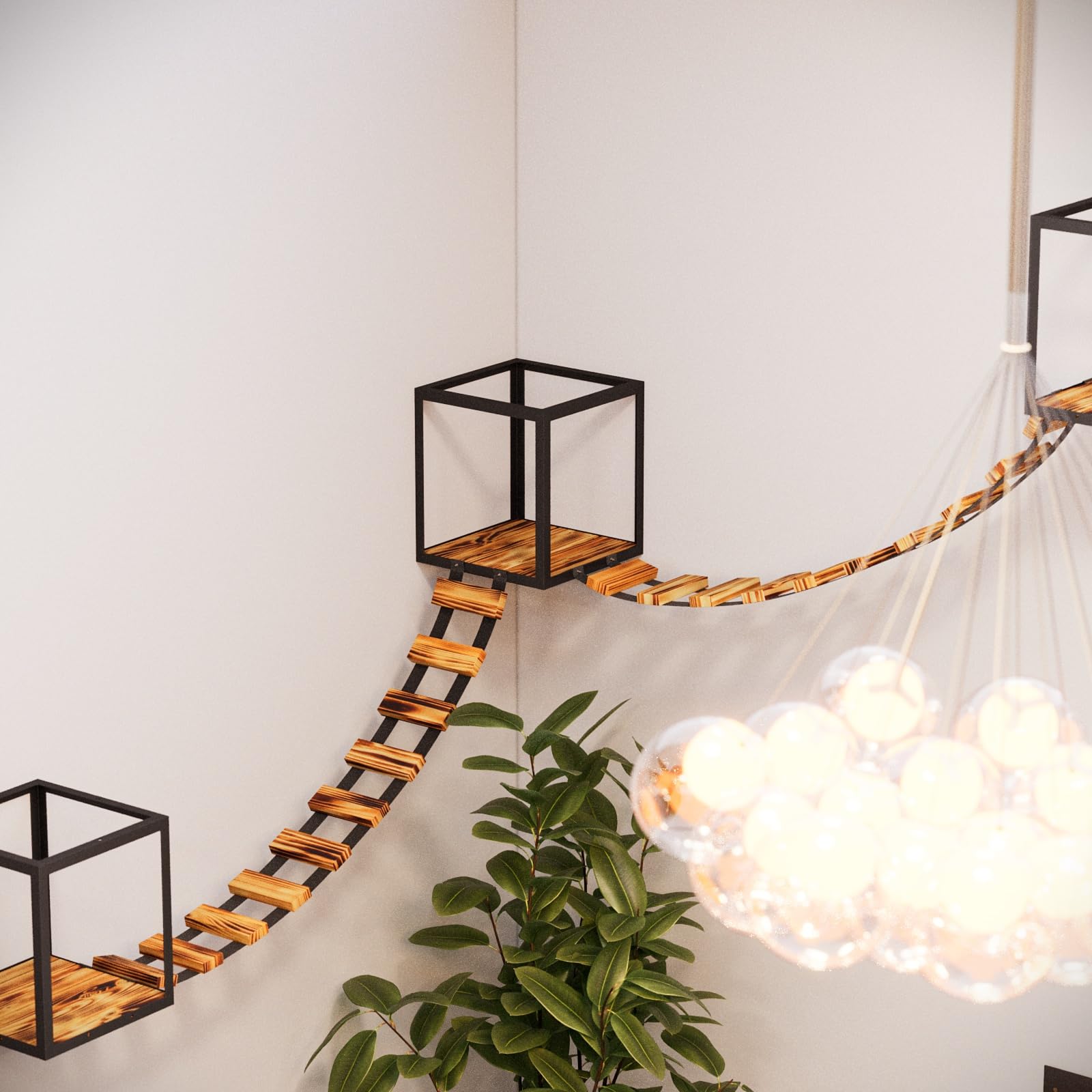 Hey Katzenfans! Diese MeowHomm Kletterwand ist der absolute Hit für eure Stubentiger. Statt langweiliger Kratzbäume bekommen eure Katzen hier ihr eigenes Kletterparadies an der Wand!\\n\\nWas die Kletterwand so besonders macht:\\n• Aus stabilem Massivholz - hält auch wilden Kletteraktionen stand\\n• 3 verschiedene Ebenen - zum Klettern, Spielen und Ausruhen\\n• Rutschfeste Oberfläche - für sicheren Halt\\n• Abgerundete Kanten - keine Verletzungsgefahr\\n• Einfache Montage - alles nötige Zubehör liegt bei\\n\\nEure Katze kann hier nach Herzenslust klettern, die Aussicht genießen und sich in der Hängematte ausruhen. Perfekt um Platz zu sparen und trotzdem genug Beschäftigung zu bieten.\\n\\nToll für:\\n• Wohnungen mit wenig Platz\\n• Haushalte mit mehreren Katzen\\n• Große Katzenrassen\\n• Aktive Kletterkünstler\\n\\nEinfach an einer freien Wand montieren und zuschauen, wie eure Katze ihr neues Reich erobert! Die klare Sicht von oben reduziert übrigens Stress - doppelt gut also.